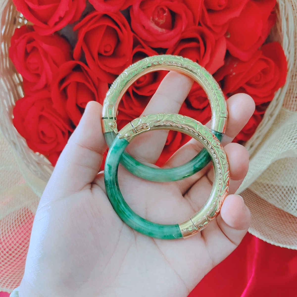 [ 1 Cái ] Vòng Tay Ngọc Cẩm Thạch Thiên Nhiên Bọc Bạc Ta Xi Vàng – Thắng Giang