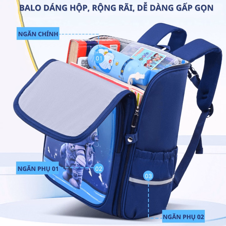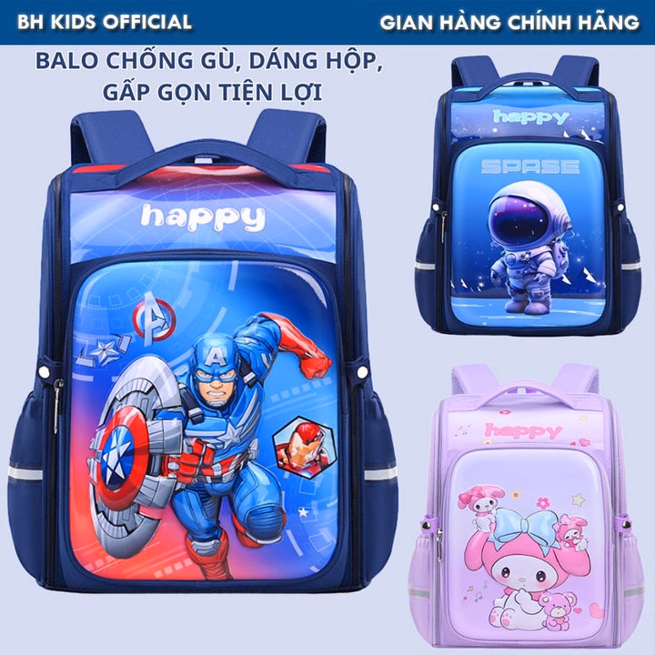 Balo Chống Gù Dáng Hộp, Dễ Gấp Gọn, Họa Tiết Hoạt Hình 3D Nổi, 2 Lớp Học Sinh Trẻ Em Lớp 1 – Lớp 6, Kiểu Nhật Cao Cấp Ch180 – Bh Kids