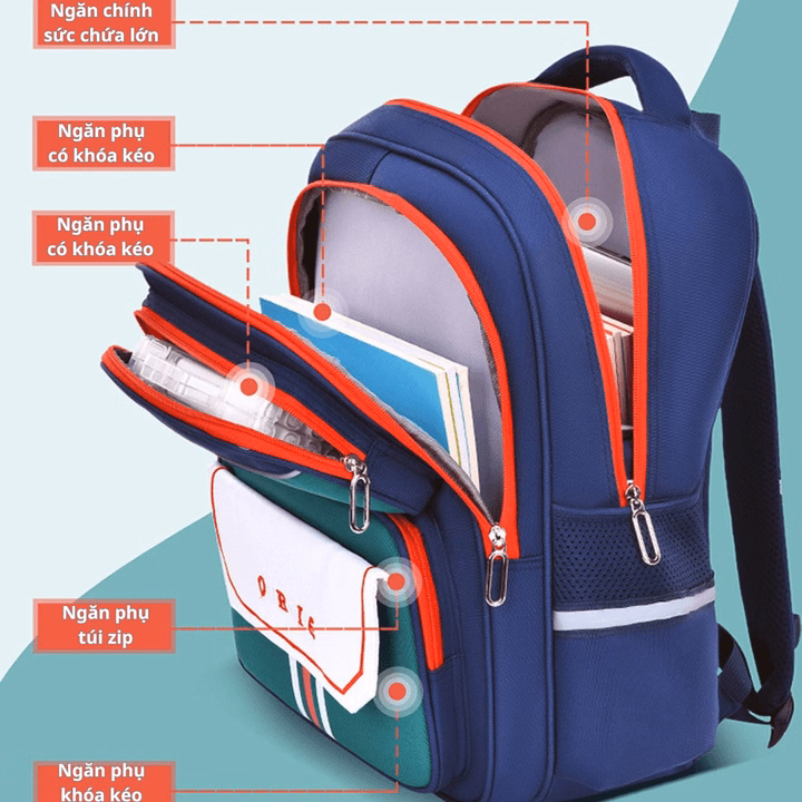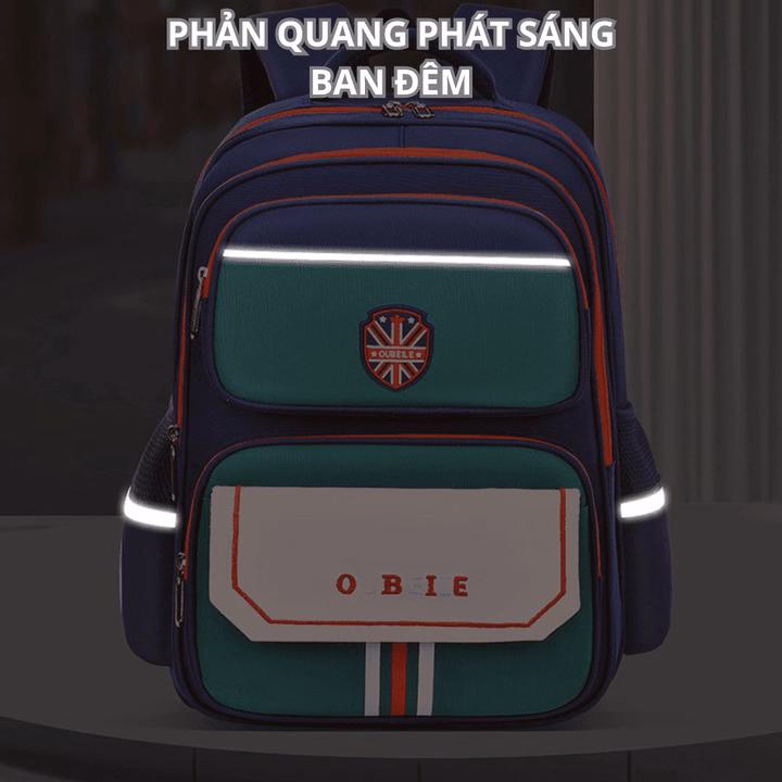 Tên sản phẩm: Balo chống gù Oubeiie cho bé trai, bé gái từ lớp 1- lớp 6, chất liệu Polyester chống thấm nước, lớp lót vải D600 phản quang phát sáng ban đêm – Bh Kids