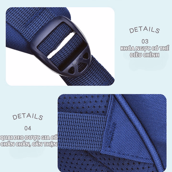 Họa tiết đơn giản nhưng vô cùng tinh tế, ngộ nghĩnh, dễ thương, chống thấm nước, có phản quang phát sáng ban đêm. Bổ sung thêm khóa ngực chống trượt