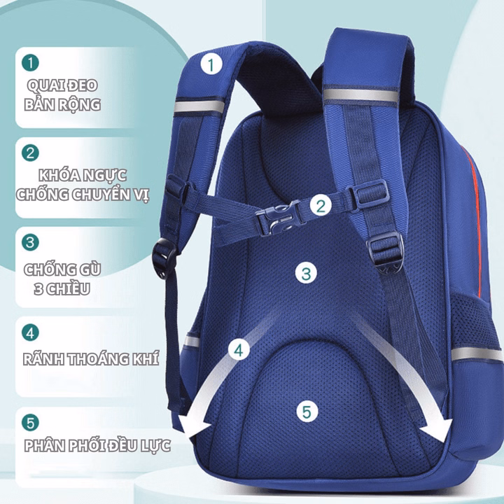Kích thước: Cao 43 x dài 30 x rộng 17cm – Phù hợp với bé học lớp 1 tới lớp 6