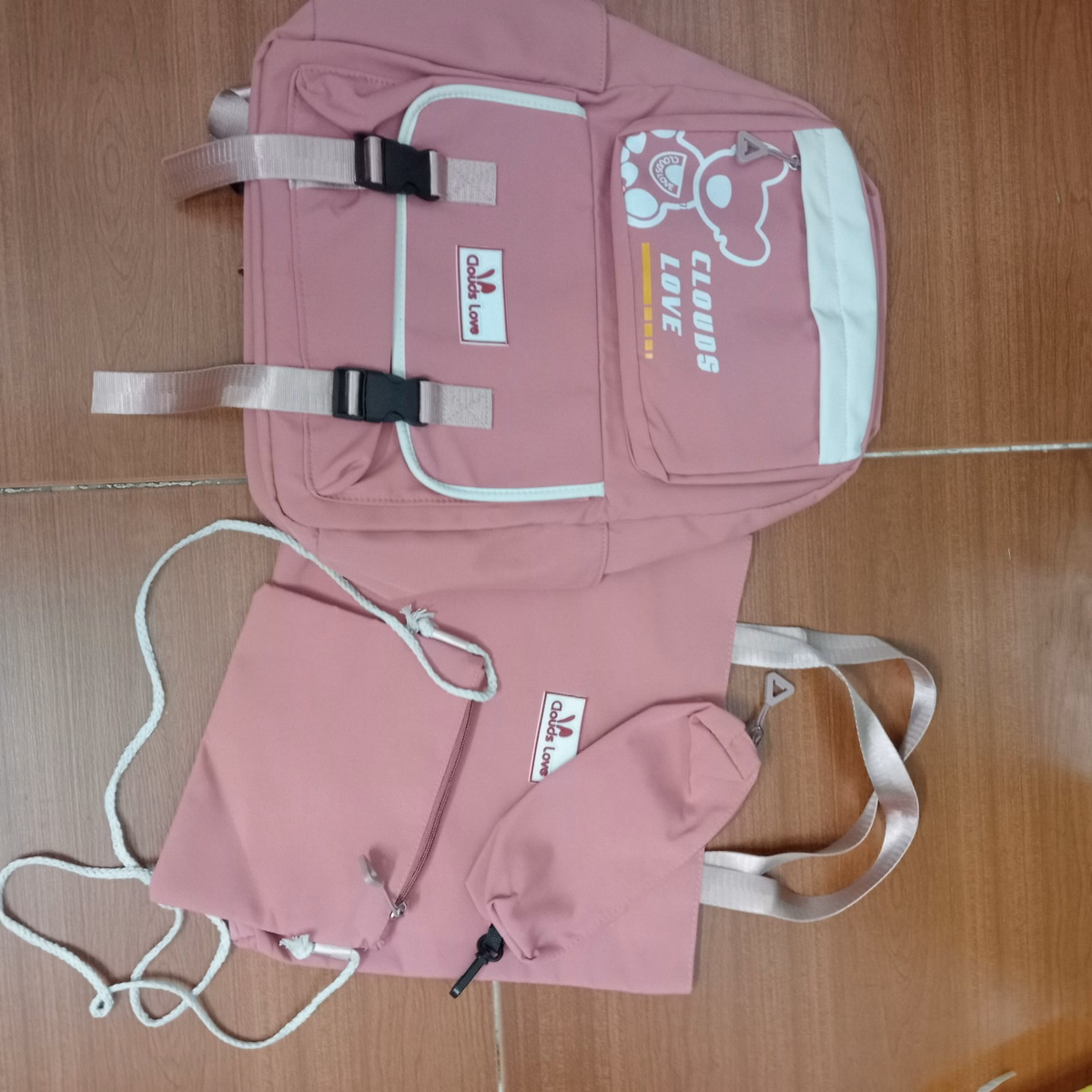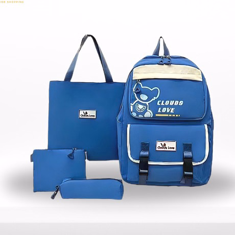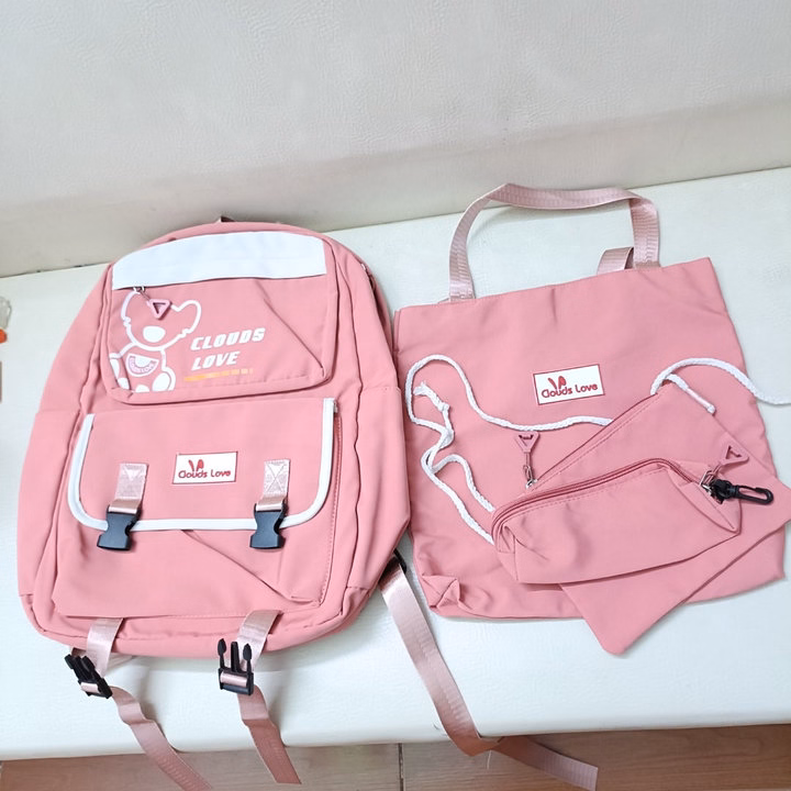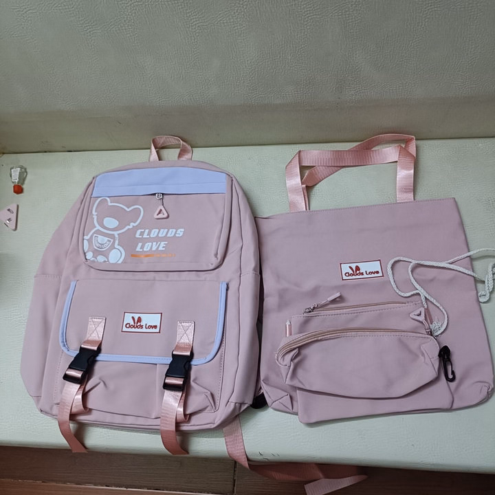 ***Tên Sản Phẩm: Combo Balo 4 Món Đi Học Thời Trang Cao Cấp Họa Tiết Gấu Clouds Love