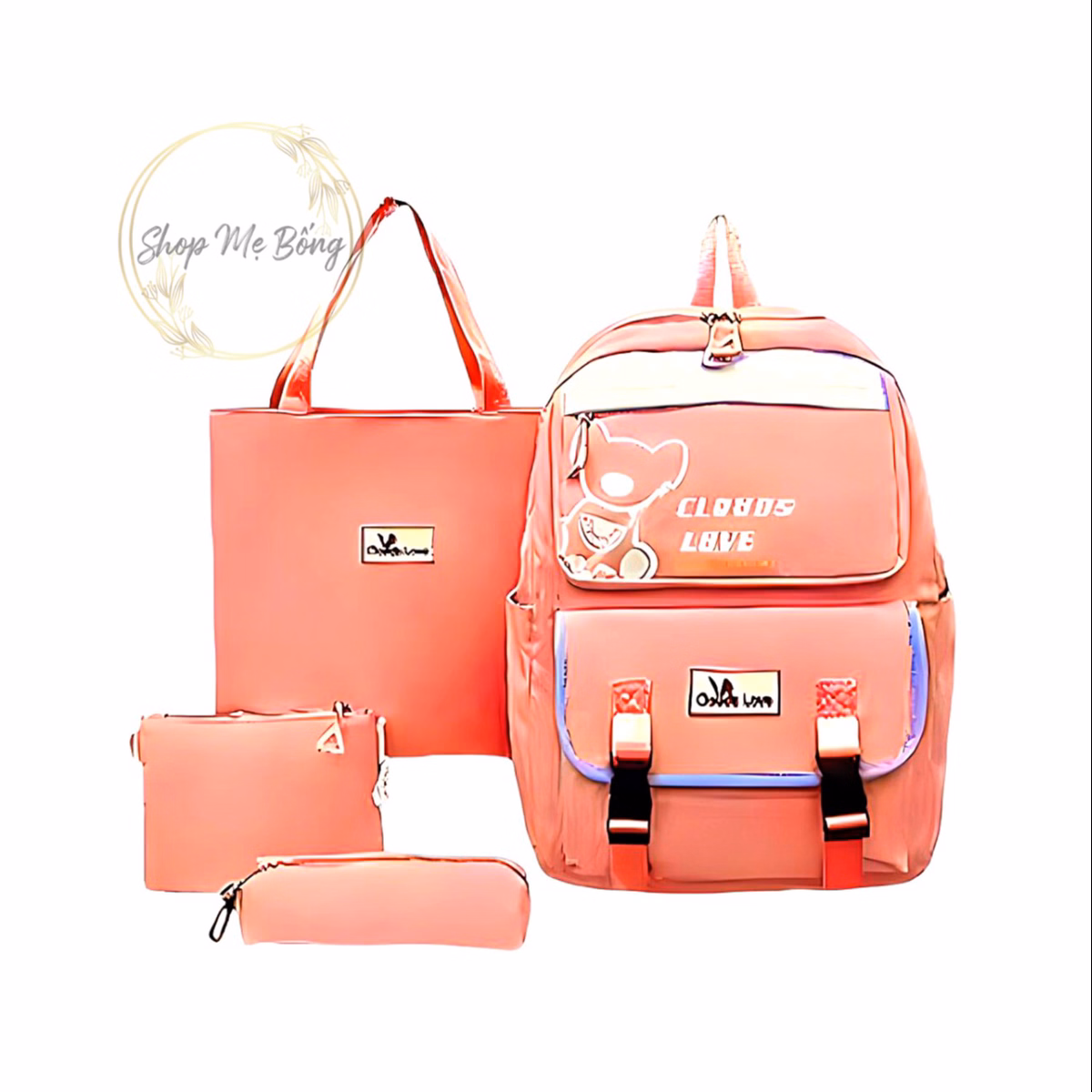 Balo Combo 4 Món Đi Học Cao Cấp Chống Thấm Nước {Quảng Châu} Gấu Clouds Love – Shop Mẹ Bống