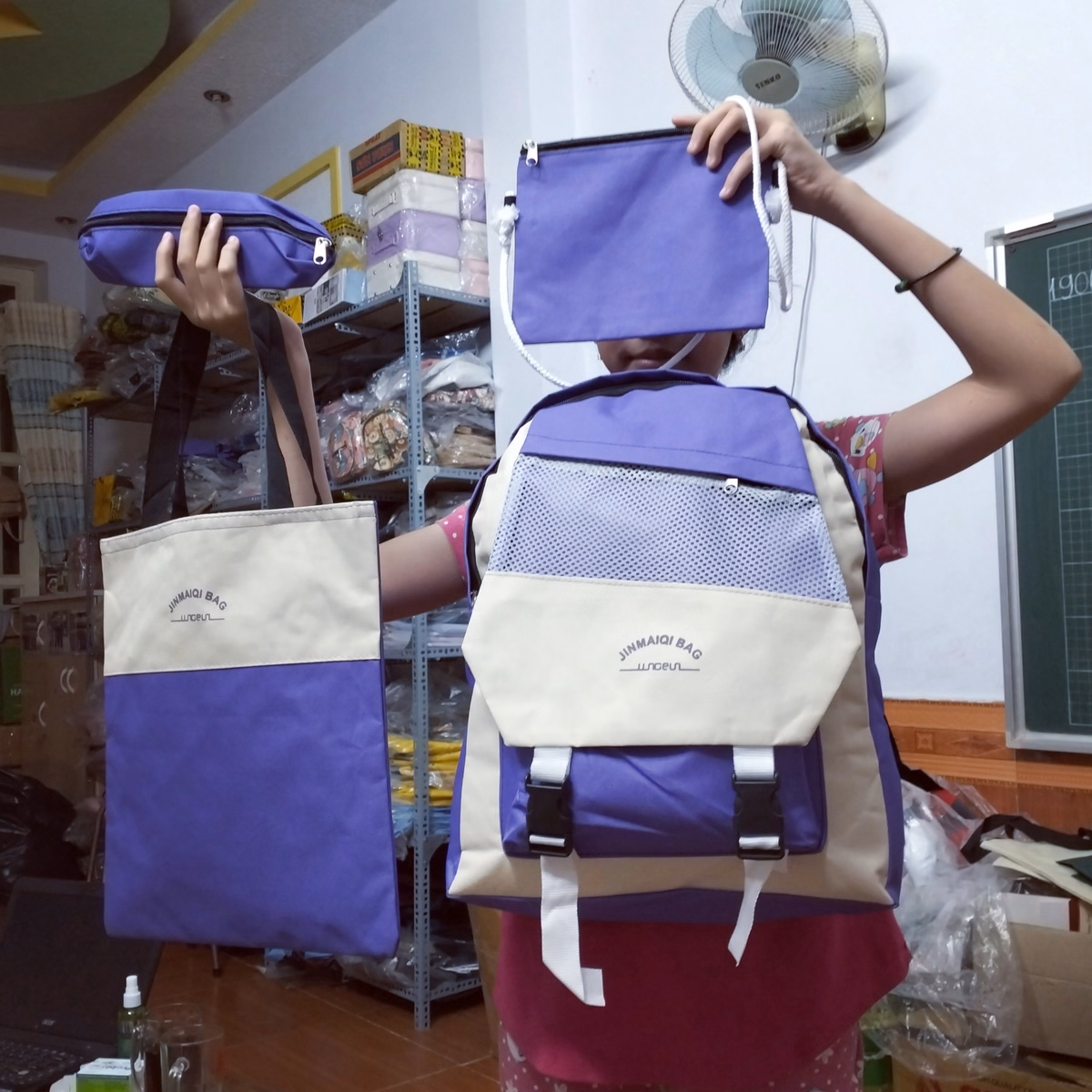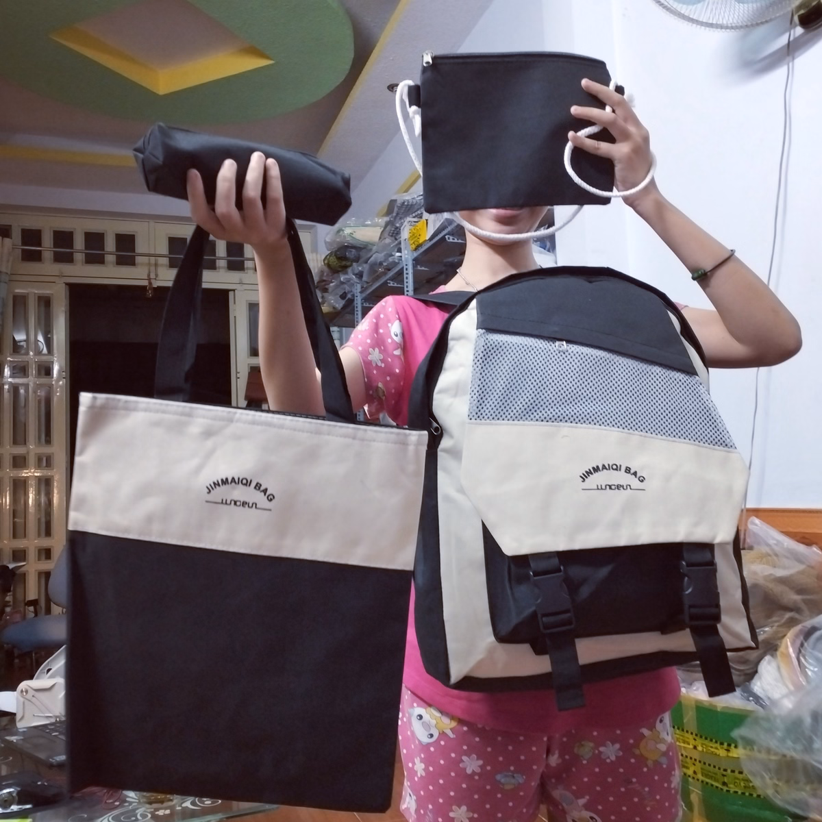 Combo 4 món gồm: 1 Balo (45 *40 cm), túi tote ( 30 *34cm), 1 ví , 1 bóp viết
