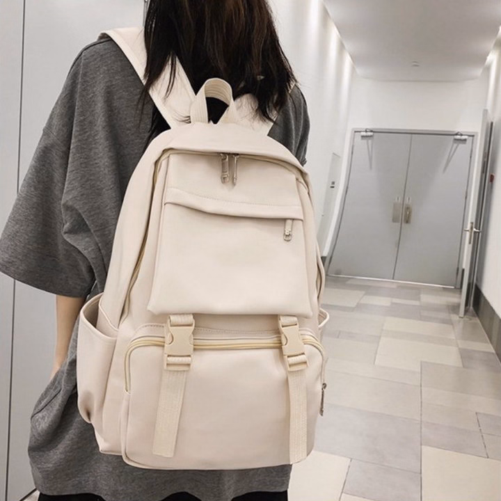 – Balo ulzzang basic với thiết kế rất nhiều ngăn. 1 ngăn lớn đựng thoải mái A4,1 ngăn kéo khoá nhỏ cùng
