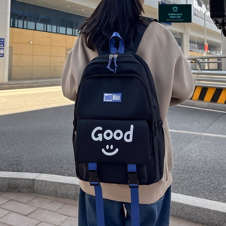 Balo Đi Học Basic Good Mặt Cười Dây Xanh Vừa A4 Ts5416- Sam Store