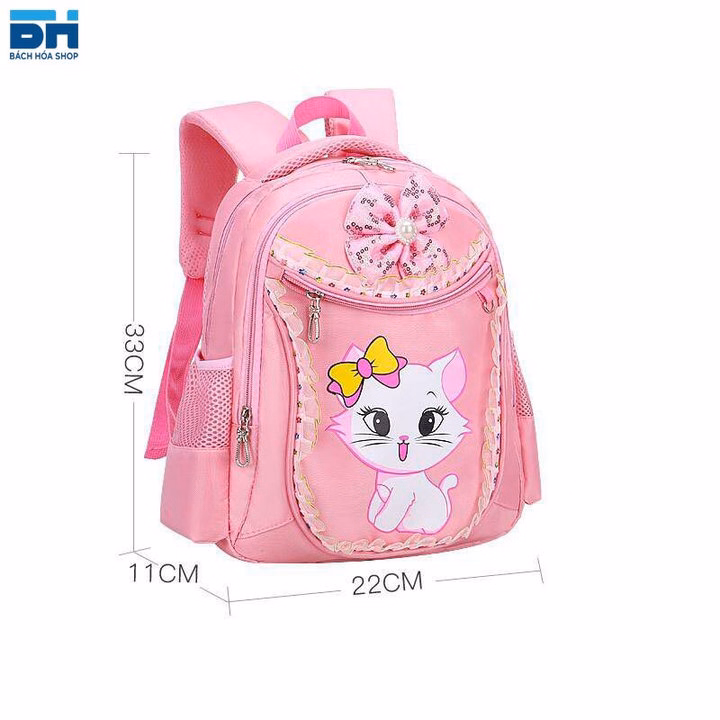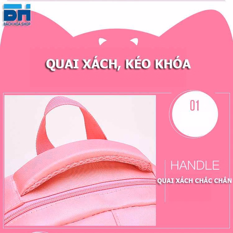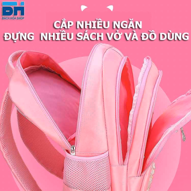 Balo đi học cho bé gái hình mèo dễ thương màu hồng siêu dễ thương chất liệu vải Polyester chống thấm, chống nước cao cấp, cặp sách cho bé gái mẫu giáo, cấp 1 tiểu học đi học.