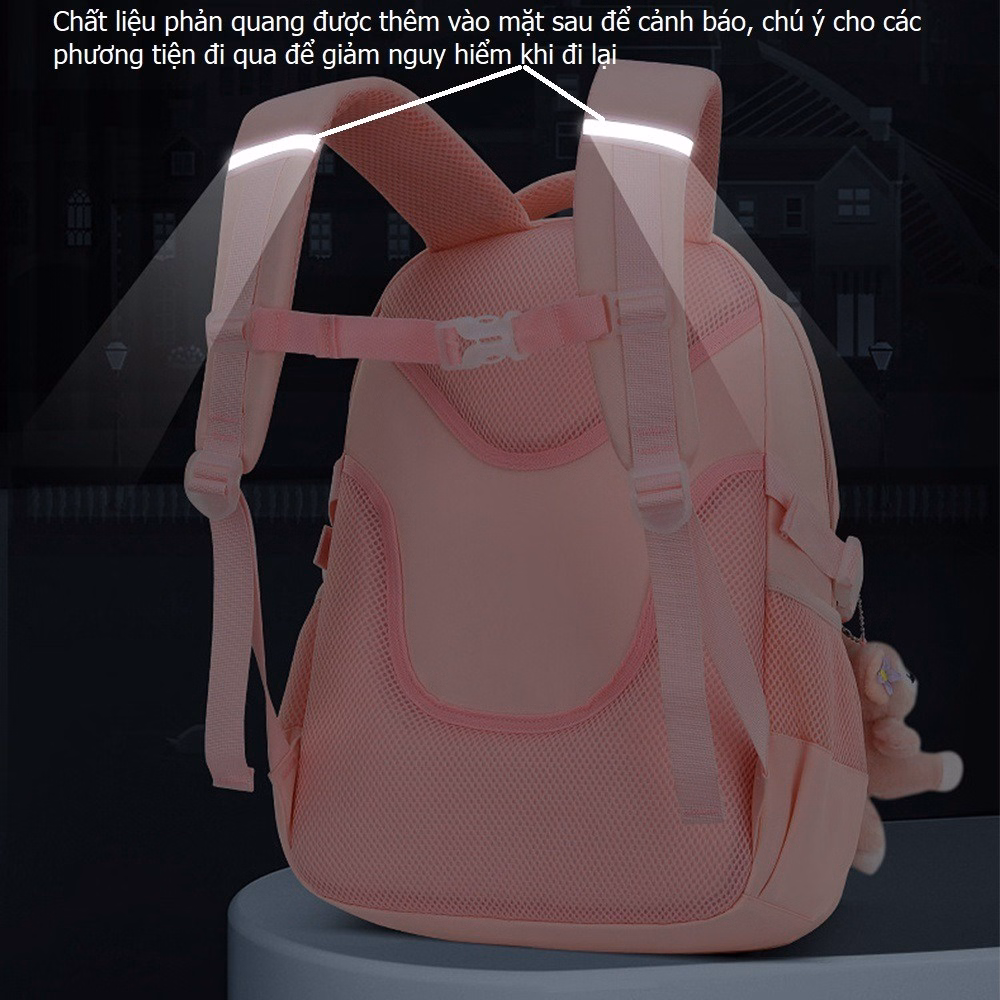 Chất liệu phản quang được thêm vào mặt sau của ba lô để cảnh báo xe truyền qua để tránh nguy hiểm vào ban đêm hoặc trong bóng tối
