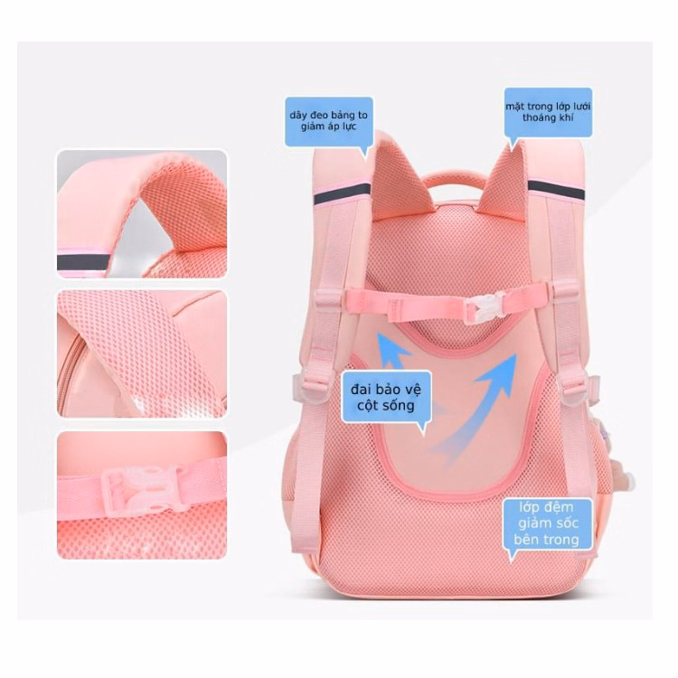 Thiết kế giảm cân của cặp học sinh có thể chuyển áp lực lên vai, lưng và thắt lưng hợp lý để trẻ có thể bế thoải mái