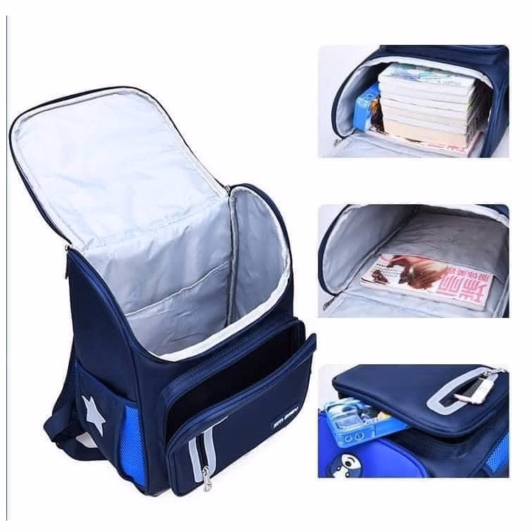 Cặp có form hộp, thiết kế với cấu tạo phù hợp với đường cột sống của bé, cơ chế chống gù hiệu quả.