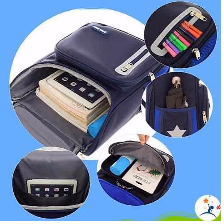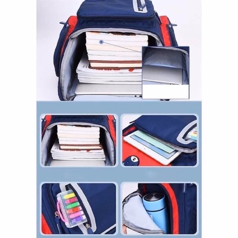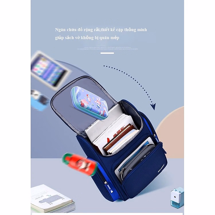 Ngăn chứa đồ rộng rãi, có chỗ để cài bút và dụng cụ học tập.