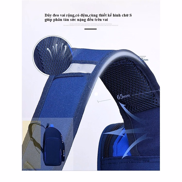 Phần đệm lưng được thiết kế áp vào lưng không bị lộ, không làm bé khó chịu, thấm hút mồ hôi tốt.