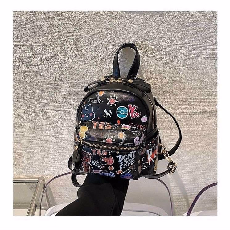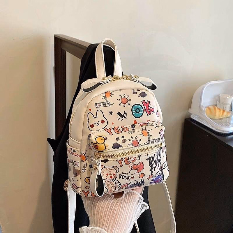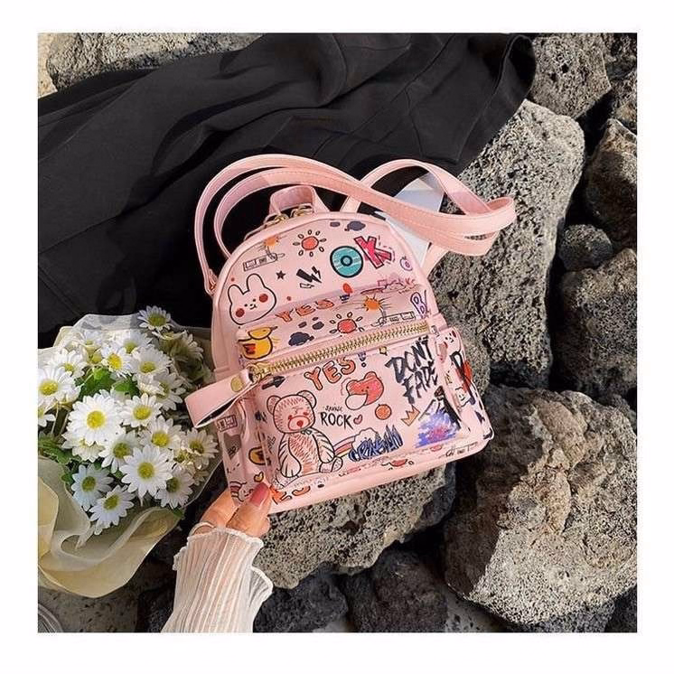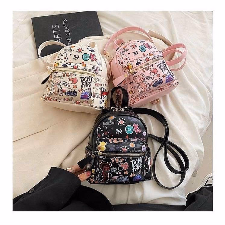 Balo Với họa tiết hoạt hình nhiều màu sắc làm nổi bật cho túi cute dễ thương , được làm từ chất liệu da Pu mềm mại, đứng form dáng túi . túi đươc thiết kế 1 dây quai xách nhỏ kèm hai dây dài điều chỉnh tùy thích để đeo vai, balo có 1 ngăn rộng chính và 1 ngăm bám nửa có ngăn khóa cho mọi người để riêng biệt đồ .