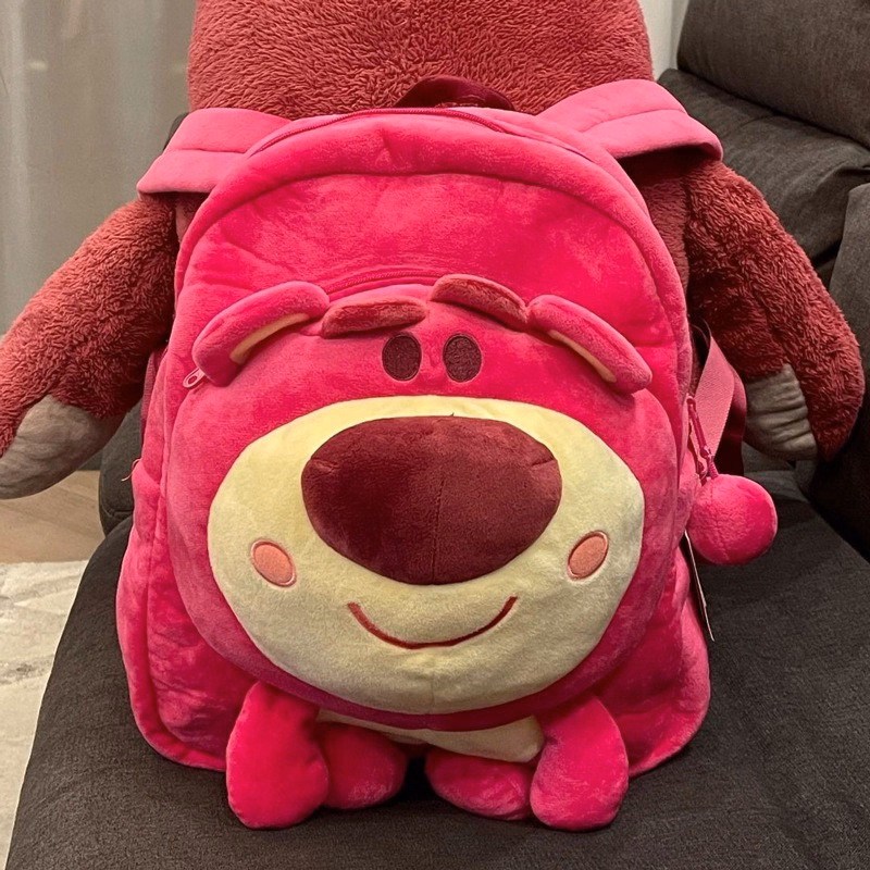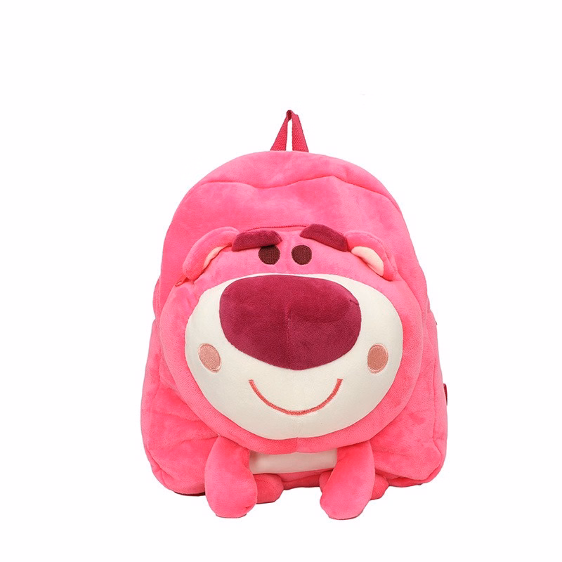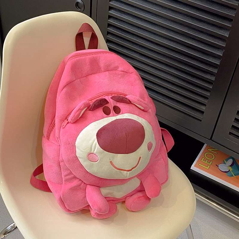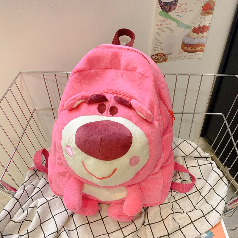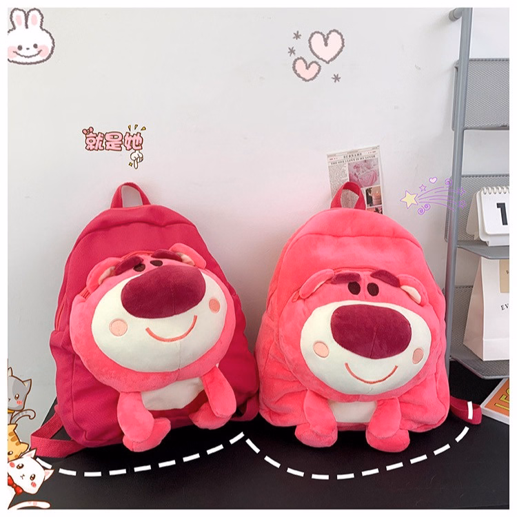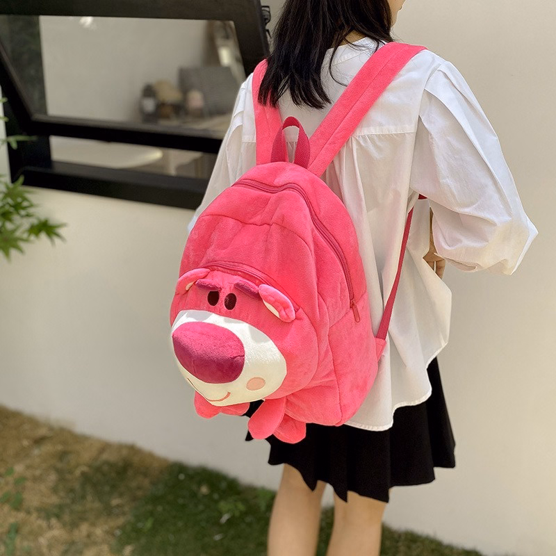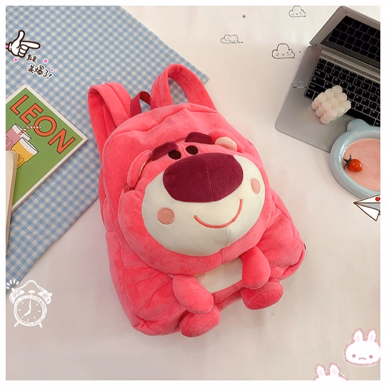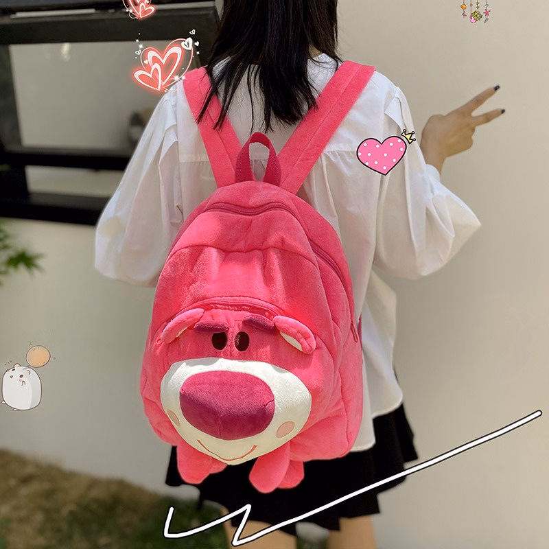 Thiết kế balo đính gấu Lotso nhồi bông má hồng siêu đáng yêu