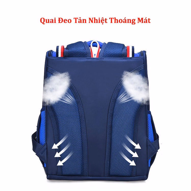 Cặp balo chống gù lưng dáng hộp có đệm lưng thiết kế thông minh, gân nổi, giảm thiểu tình trạng đau nhức, khó chịu ở vai hay lưng, để bé thoải mái ngay cả khi phải đeo balo trong thời gian dài.