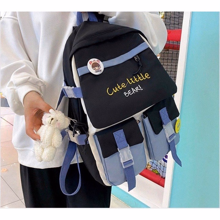 – Balo ulzzang basic với thiết kế rất nhiều ngăn. 1 ngăn lớn đựng thoải mái A4,1 ngăn kéo khoá nhỏ cùng