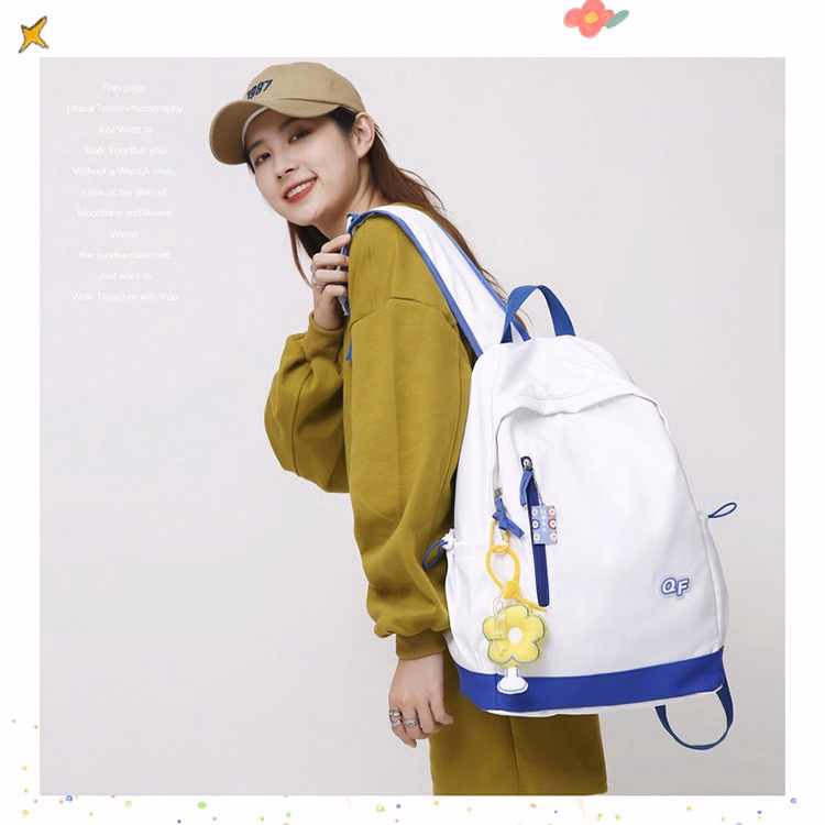 Tên sản phẩm: Balo nam nữ Qf đi học dễ thương làm cặp sách, túi xách thời trang Ulzzang Hàn Quốc