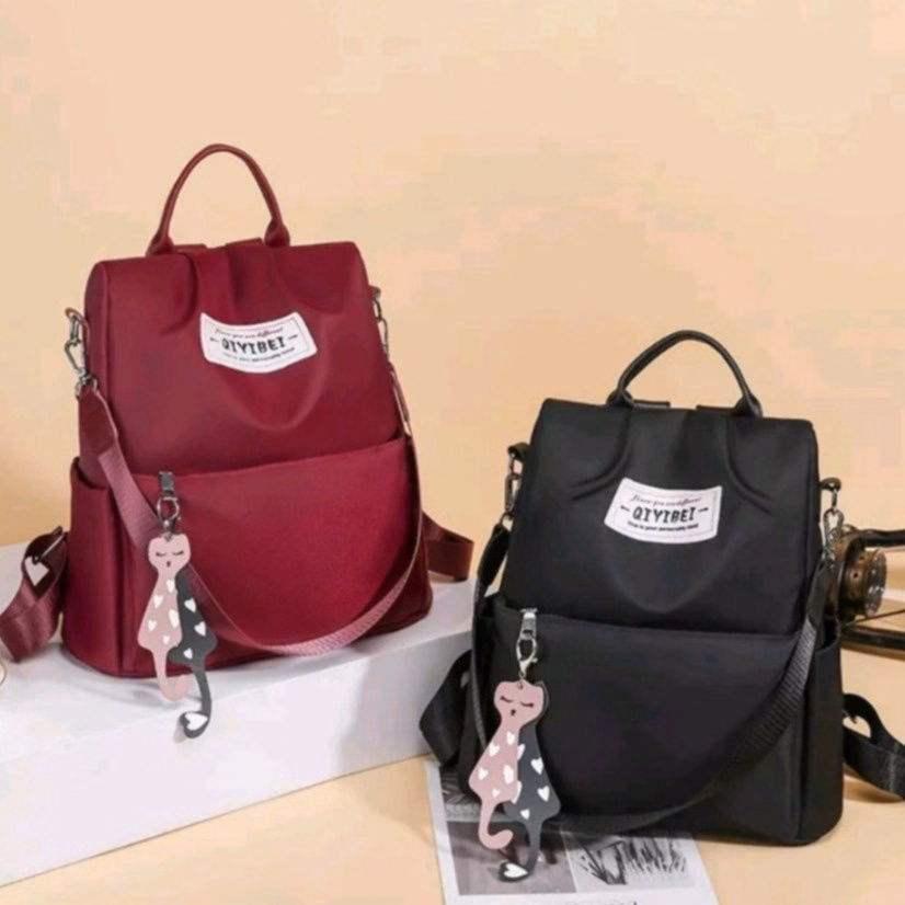 Balo Thời Trang Cao Cấp Phong Cách Hàn Quốc Qiyibei Vải Oxford Kèm Gấu Shop Mẹ Bống
