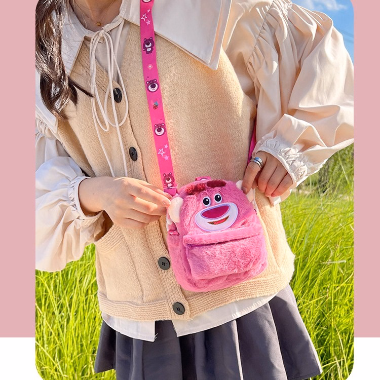 – Tên sản phẩm: Balo – Túi Bao Tử mini đeo chéo hình Gấu Dâu Tây Lotso họa tiết hoạt hình