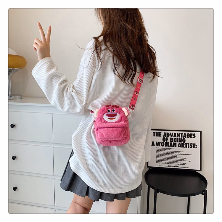 Balo – Túi Bao Tử Mini Đeo Chéo Hình Gấu Dâu Tây Lotso Họa Tiết Hoạt Hình – Dmastore