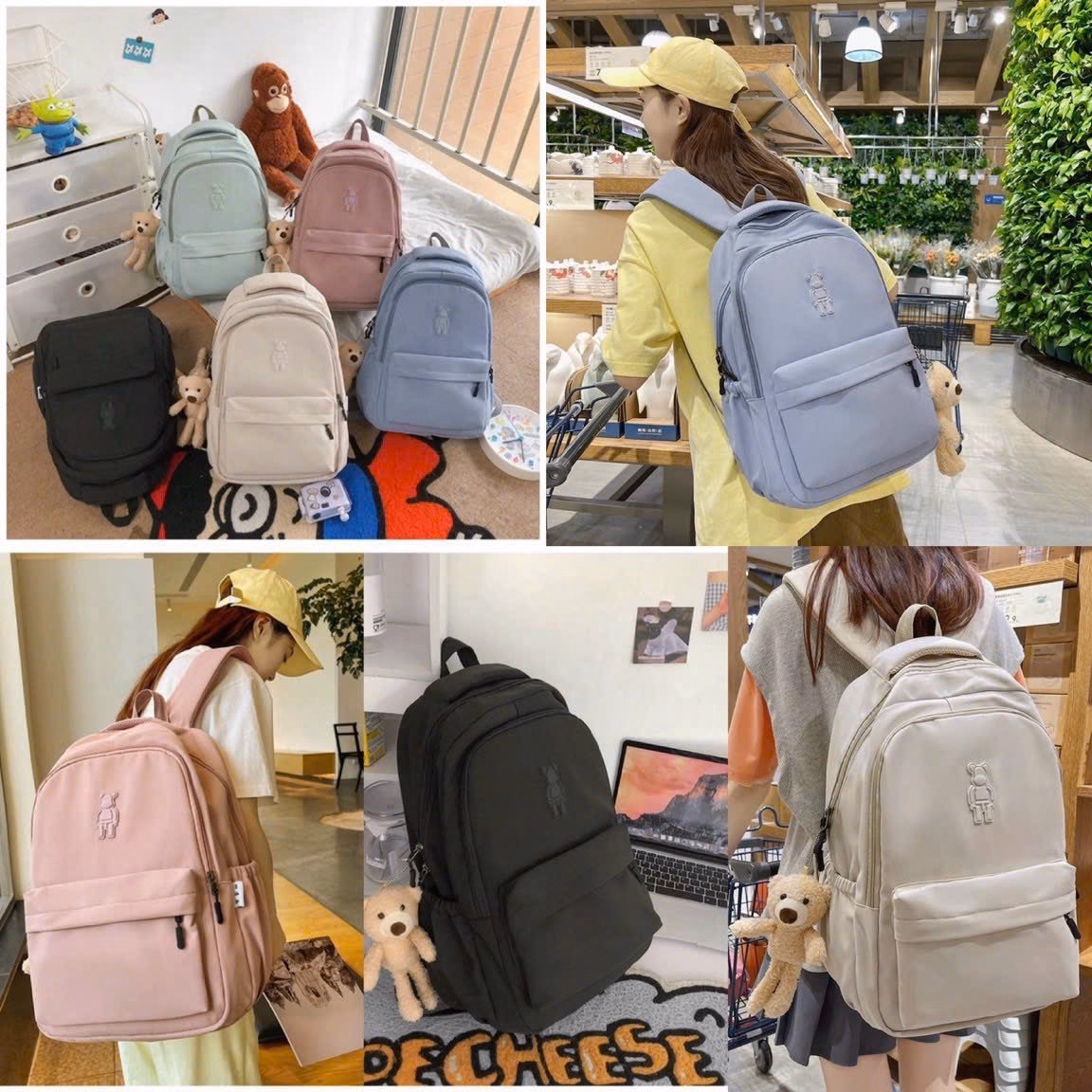 🌟🎉 Cùng trải nghiệm phong cách ulzzang độc đáo với balo thiết kế hình gấu nổi bật!