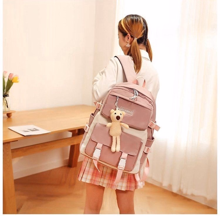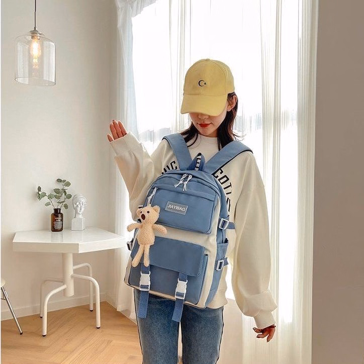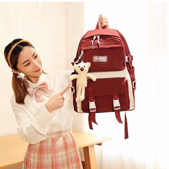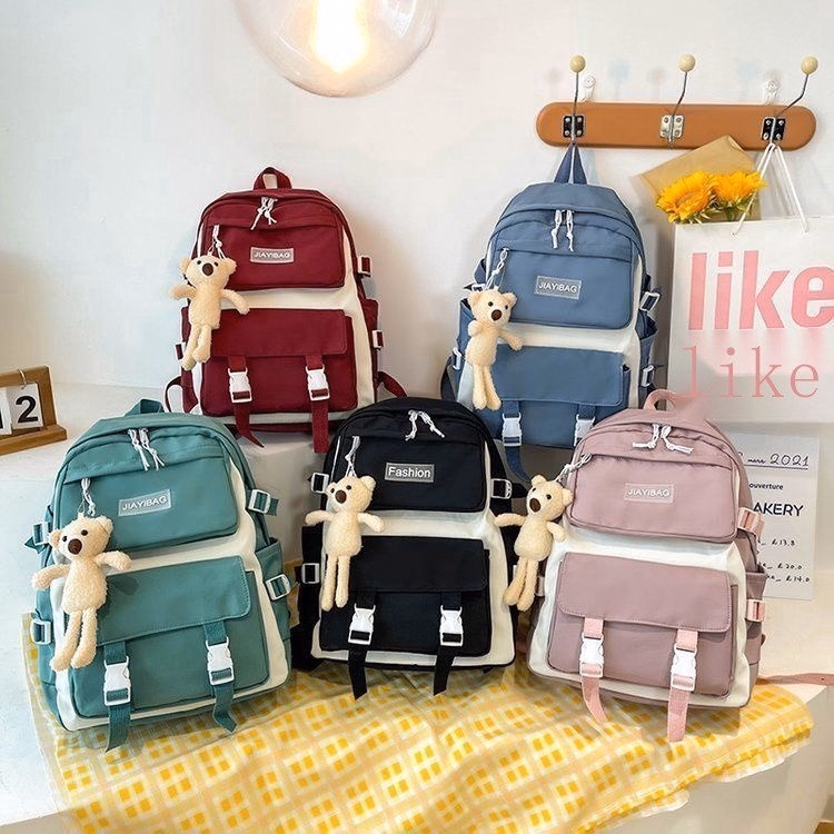 Balo Ulzzang Hàn Quôc Tặng Kèm Gấu Đựng Laptop Vải Dù Trượt Nước Thời Trang 701 – Larita Fashion