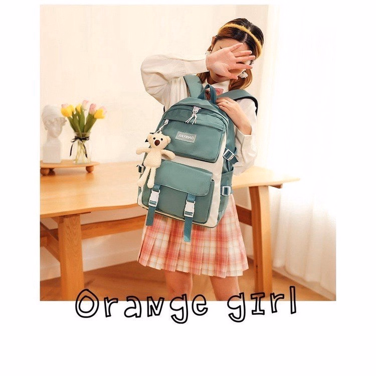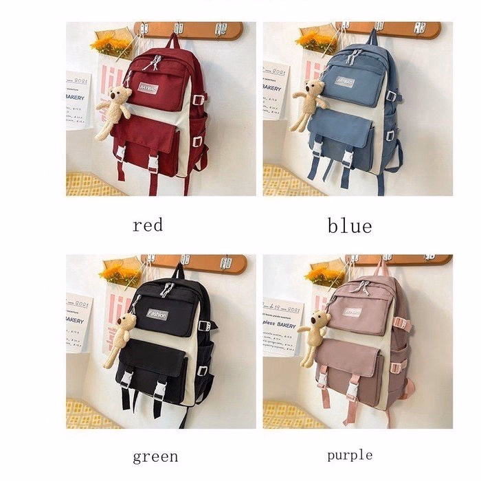 ✅Tên sản phẩm: Balo Ulzzang Hàn Quôc Tặng Kèm Gấu Đựng Laptop Vải Dù Trượt Nước Thời Trang