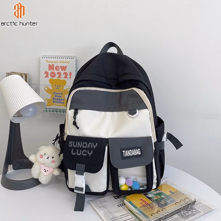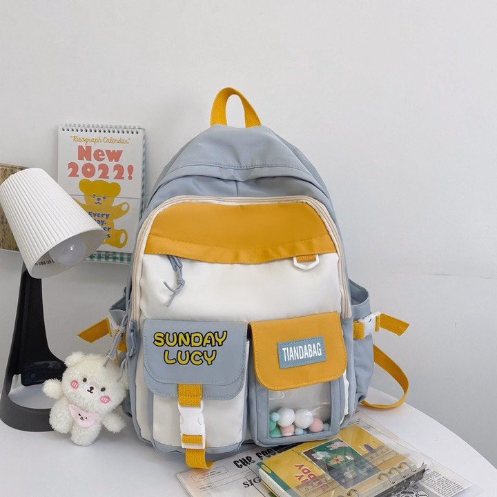 – Balo ulzzang basic với thiết kế rất nhiều ngăn. 1 ngăn lớn đựng thoải mái A4,1 ngăn kéo khoá nhỏ cùng