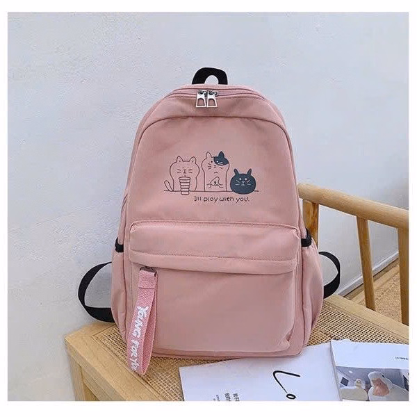 Balo Vải Đi Học Gia Đình Mèo Đựng Vừa A4 St65R- Nana House