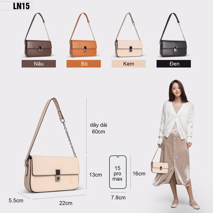 – Một chiếc túi xách Petla Ln15 cao cấp – Kích thước: 22×5.5x13cm