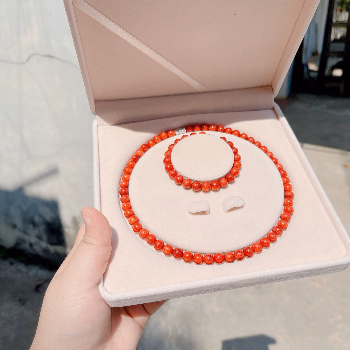 Bộ Trang Sức Đá Ngọc Cẩm Thạch Huyết 8 Ly – Thắng Giang
