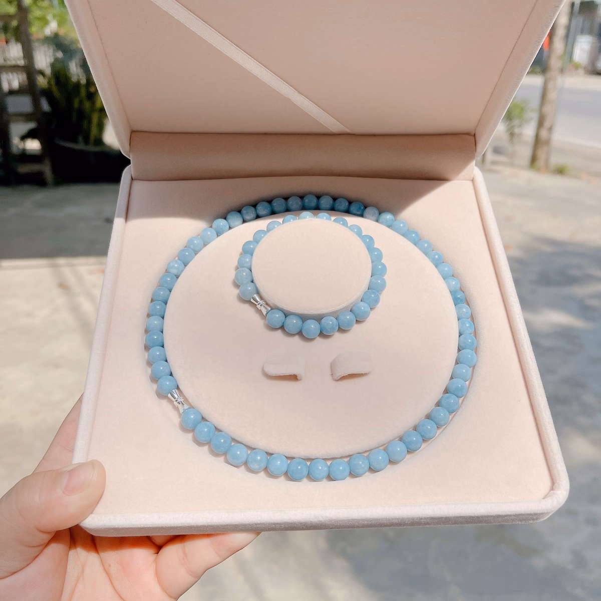 Bộ Trang Sức Đá Thạch Anh Màu Aquamarine – Thắng Giang