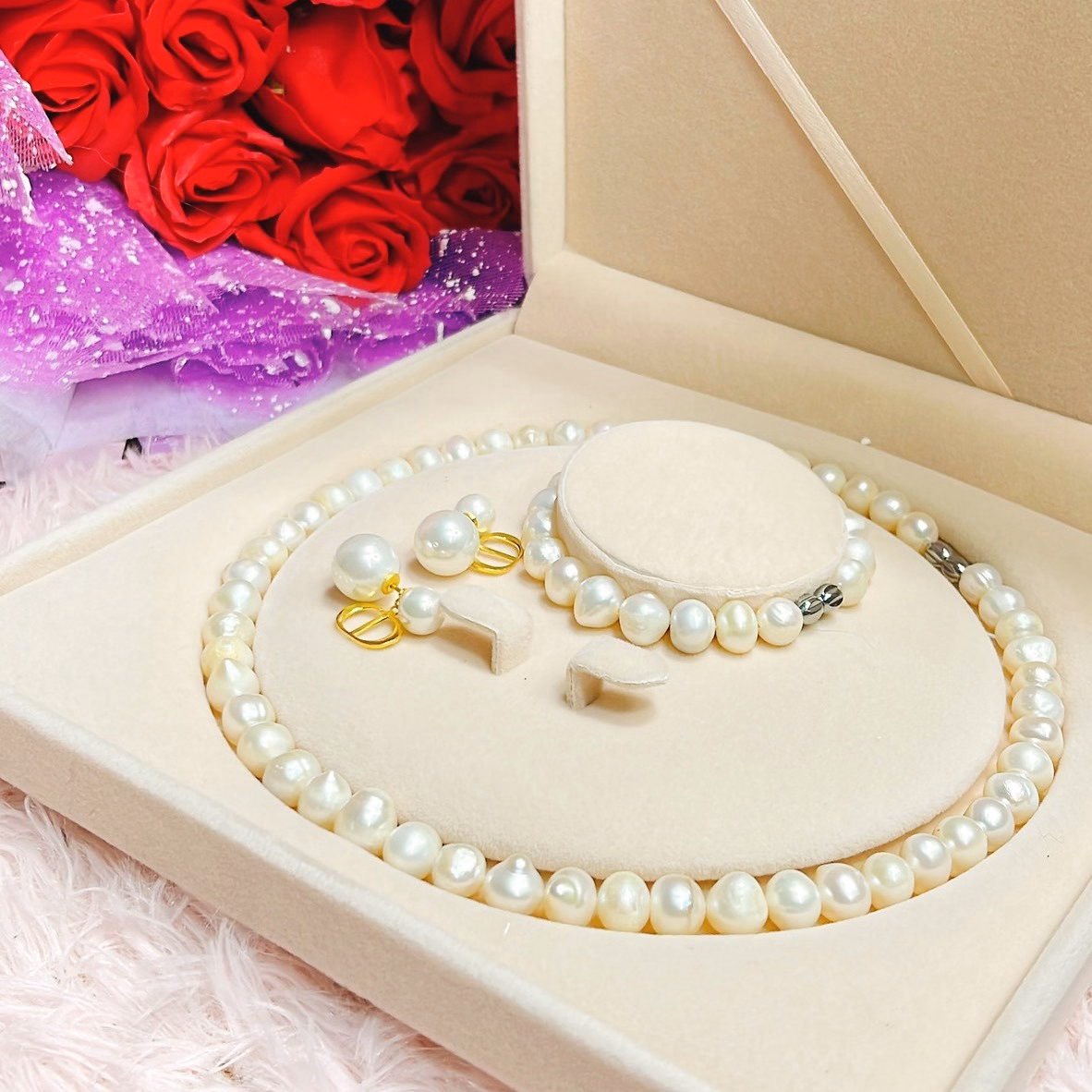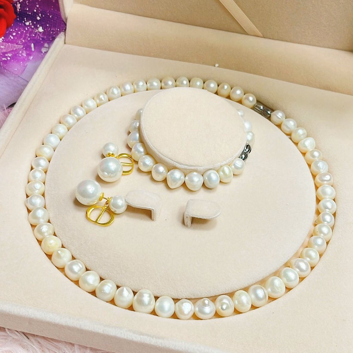 Bộ Trang Sức Ngọc Trai Nuôi Nước Ngọt Thiên Nhiên 10 Ly – Thắng Giang