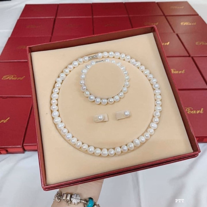 Bộ Trang Sức Ngọc Trai Nuôi Nước Ngọt Thiên Nhiên Kèm Hộp – Thắng Giang