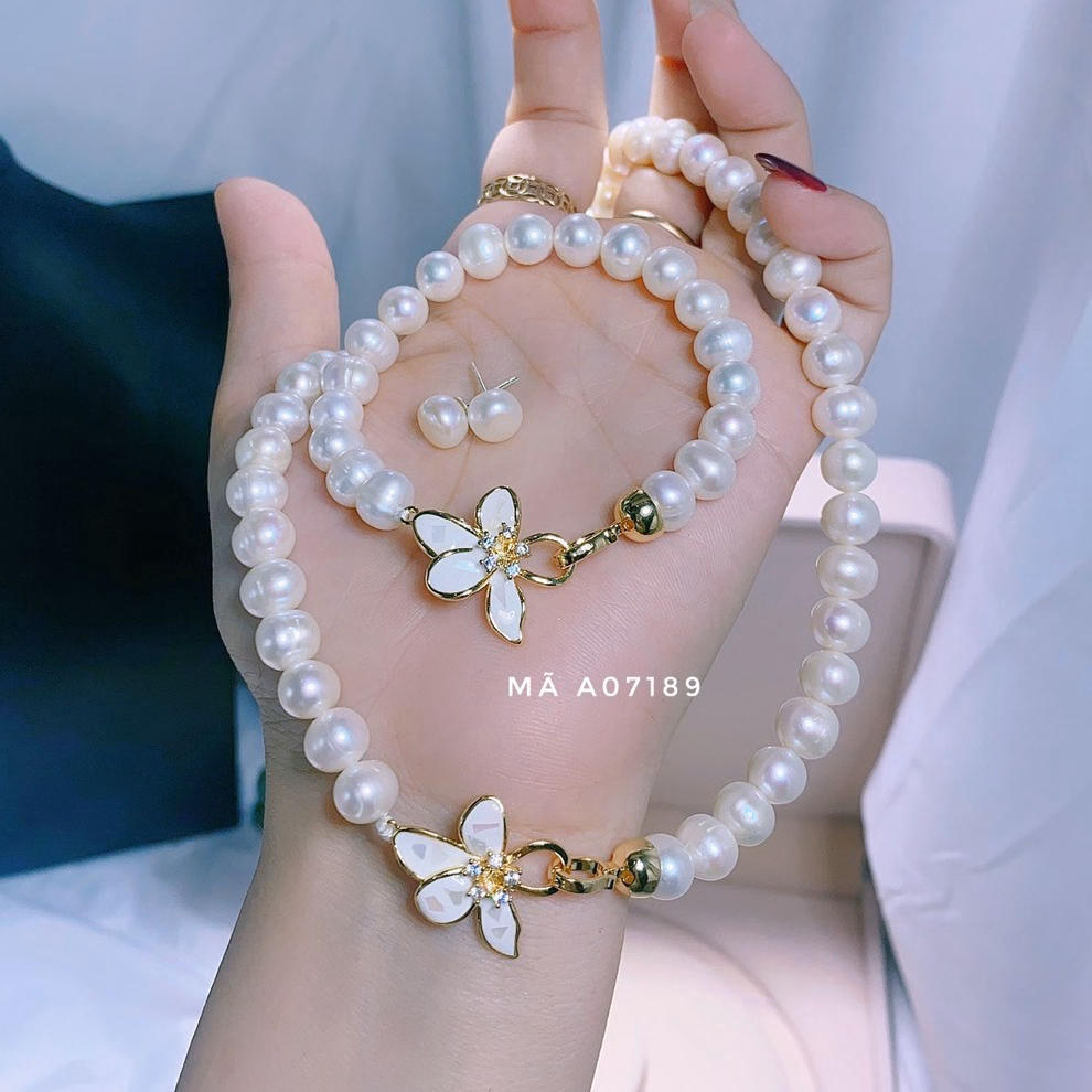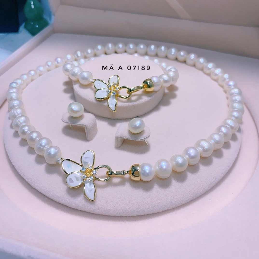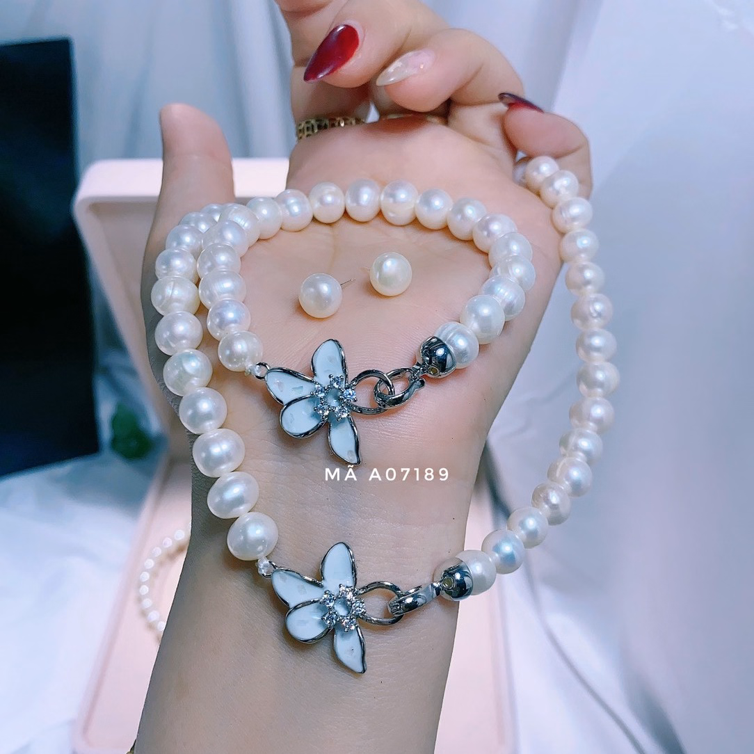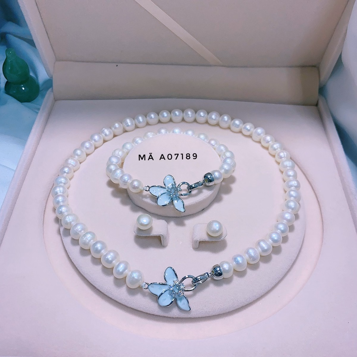 Bộ Trang Sức Ngọc Trai Nuôi Nước Ngọt Thiên Nhiên Khóa Hoa – Thắng Giang