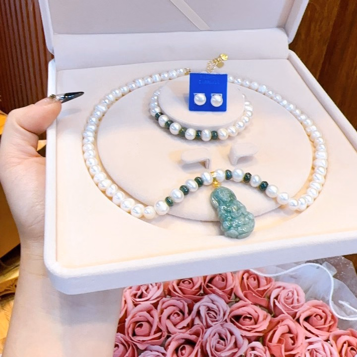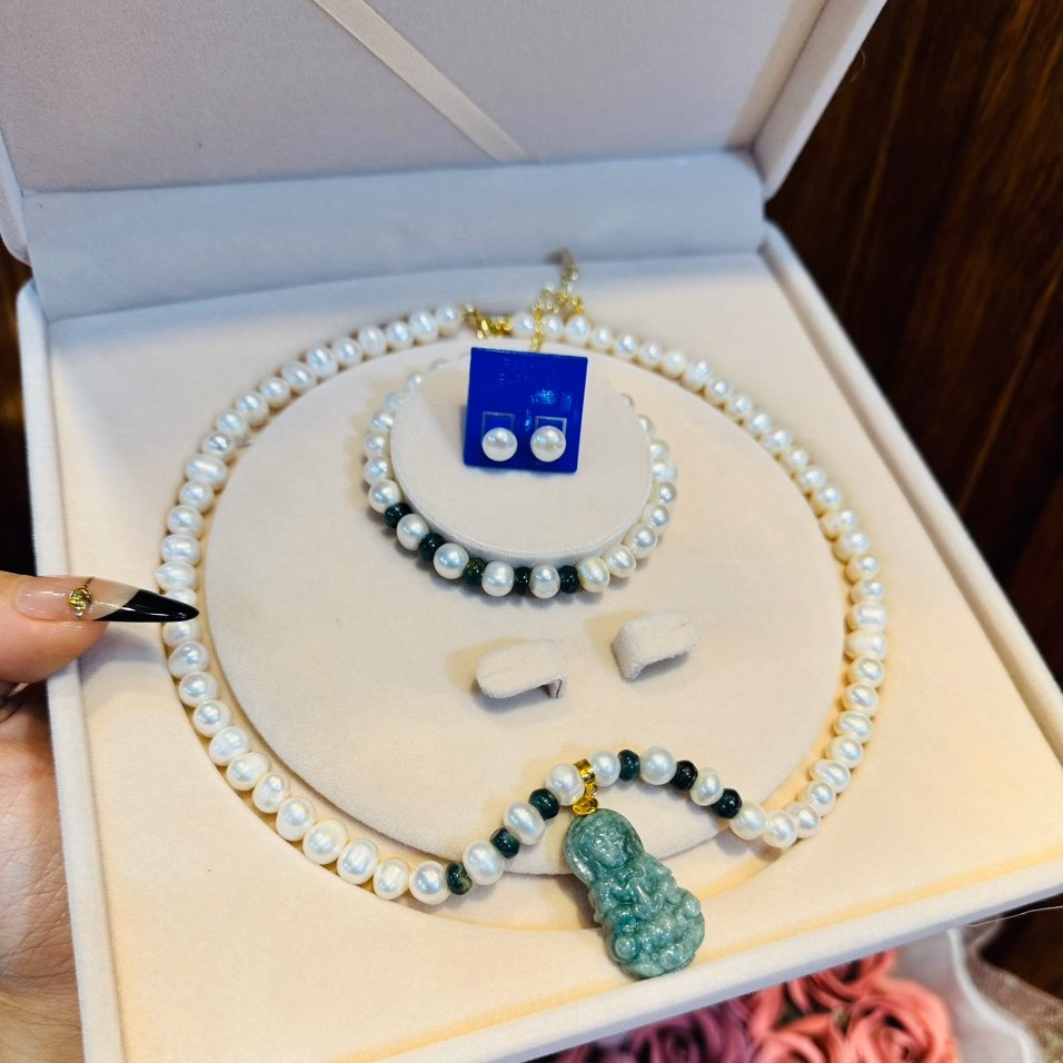 Bộ Trang Sức Ngọc Trai Nuôi Thiên Nhiên Bọc Bạc Ta – Thắng Giang