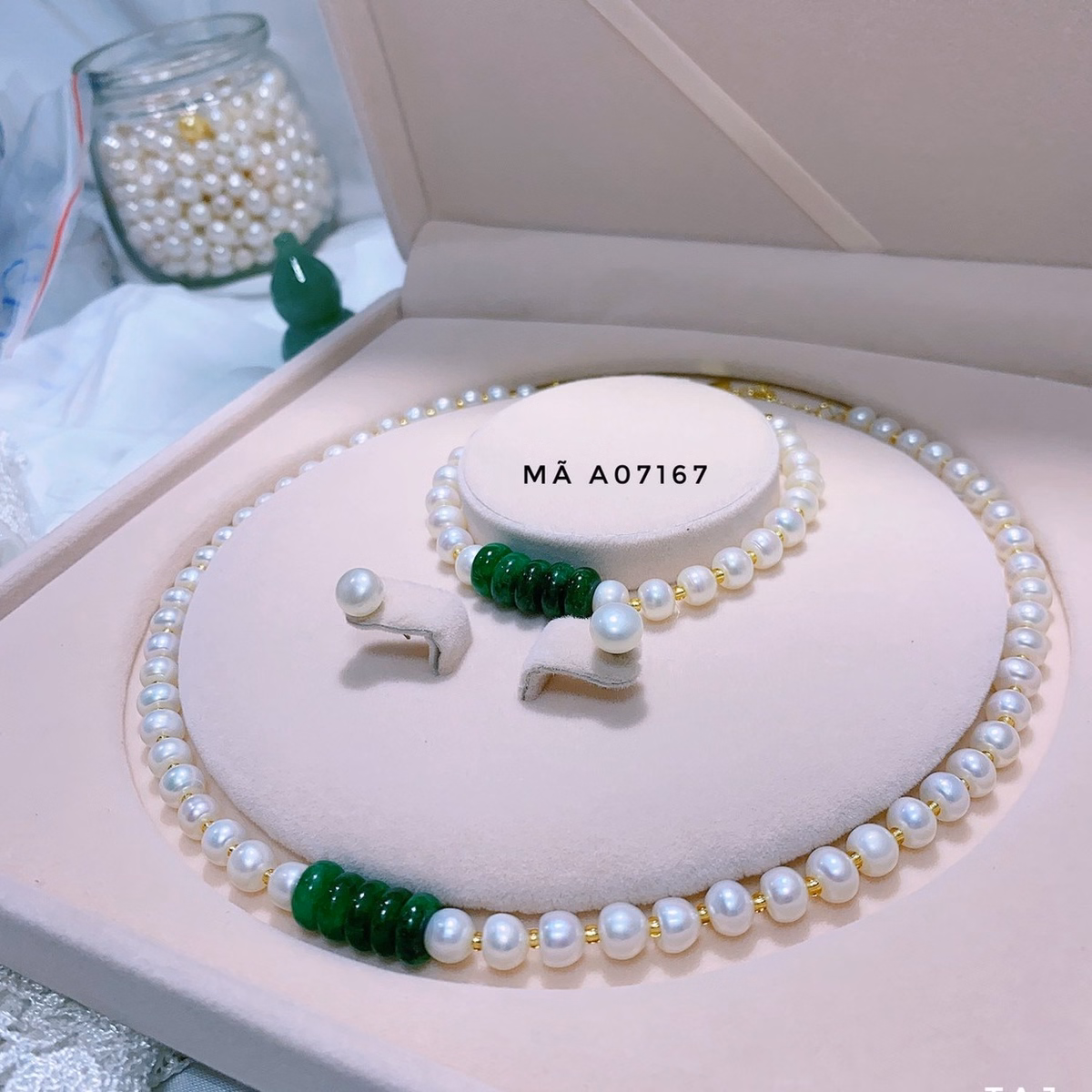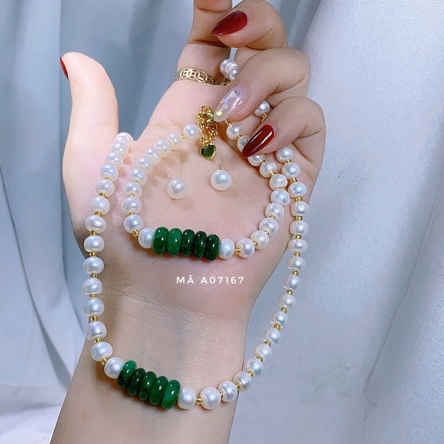 Bộ Trang Sức Ngọc Trai Nuôi Phối Ngũ Điếu Ngọc Cẩm Thạch – Thắng Giang