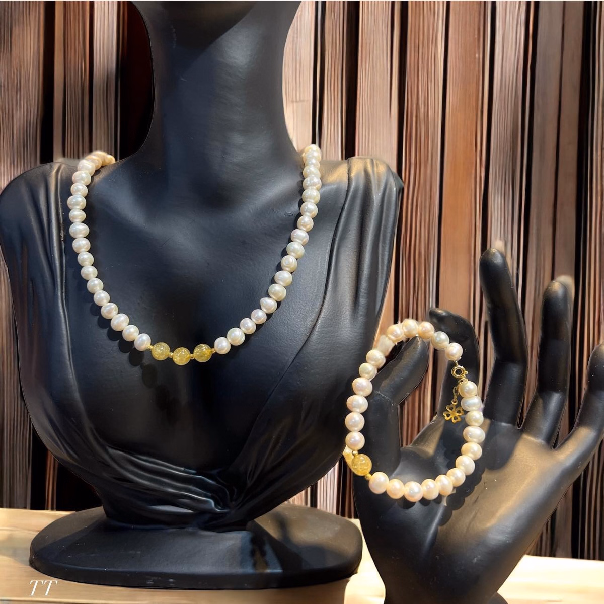 Bộ Ngọc Trai Nuôi Nước Ngọt Thiên Nhiên Đá Thạch Anh Tóc Vàng – Thắng Giang
