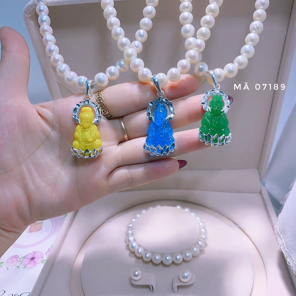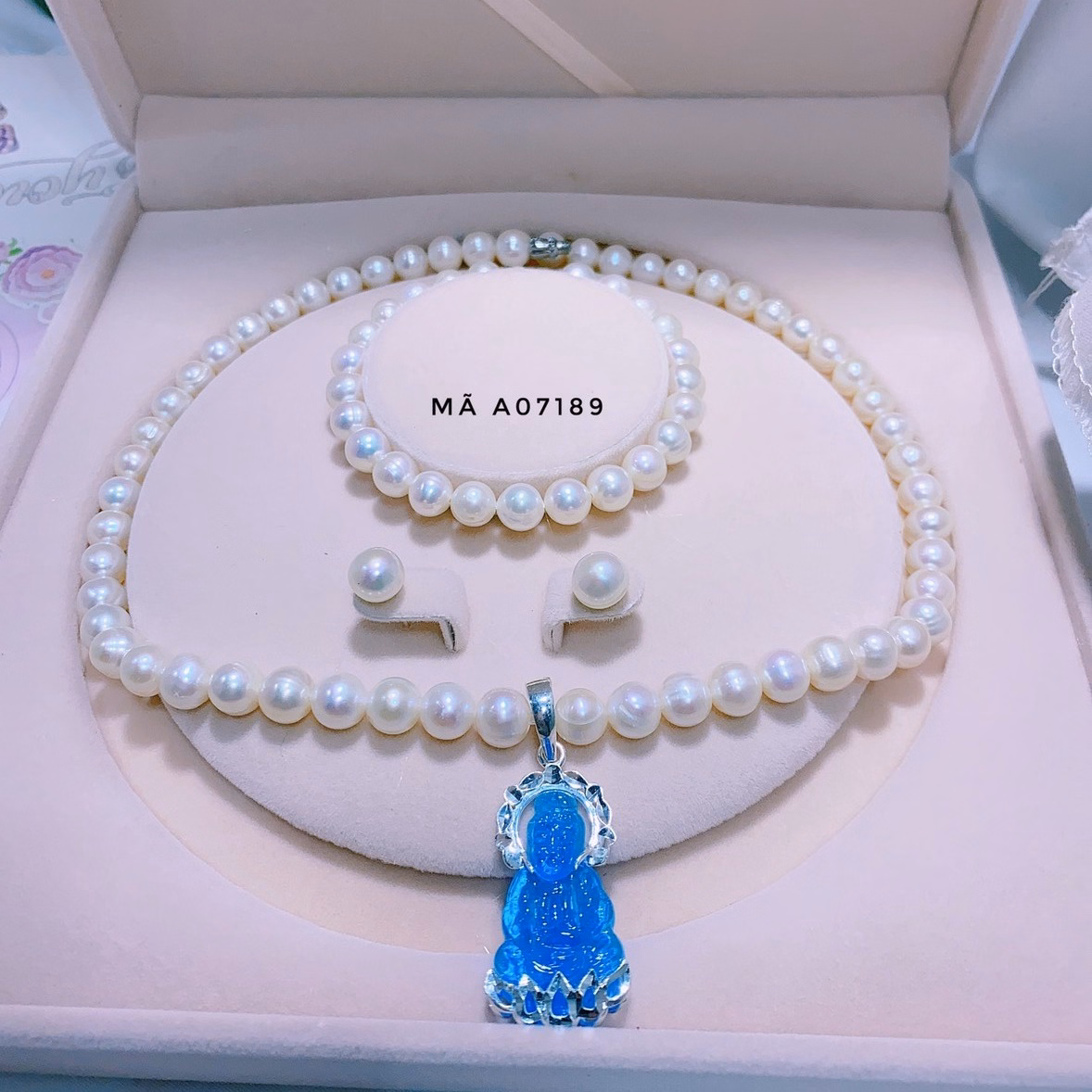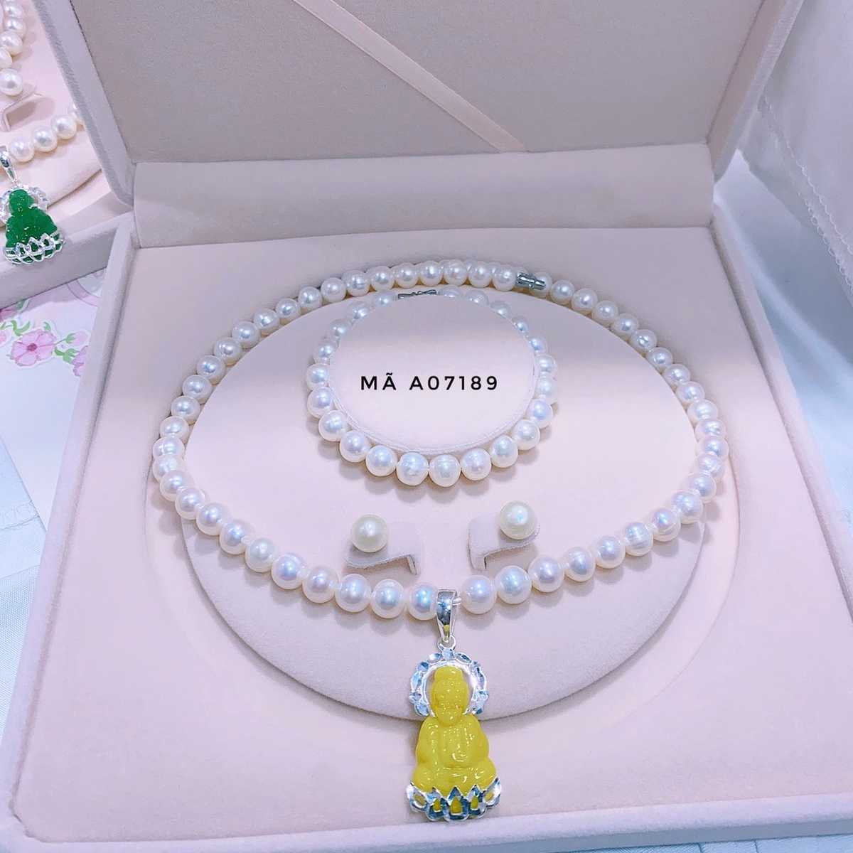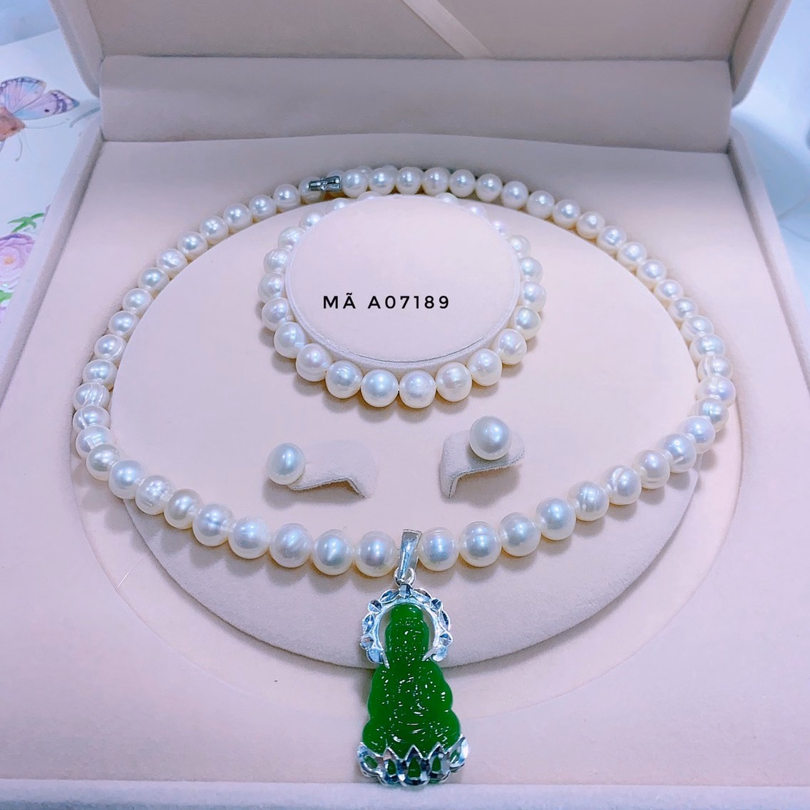 Tên sản phẩm: bộ trang sức ngọc trai nuôi thiên nhiên phối mặt quan âm bọc bạc – thắng giang