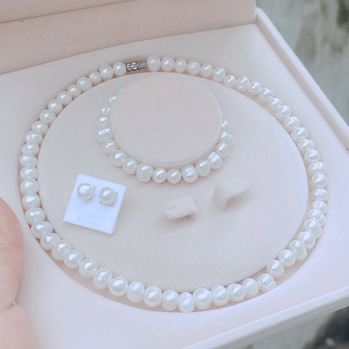 Bộ Trang Sức Ngọc Trai Nuôi Thiên Nhiên Thắt Tâm Tặng Hộp Sang Trọng – Thắng Giang