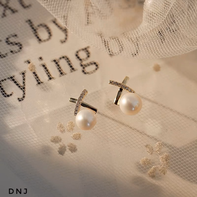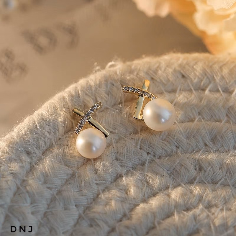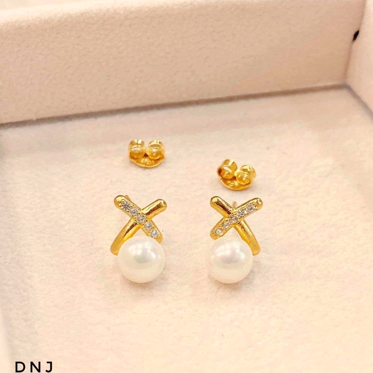 Tên sản phẩm: bông tai bạc ta , bạc xi vàng hình chữ x gắn trai san hô – thắng giang
