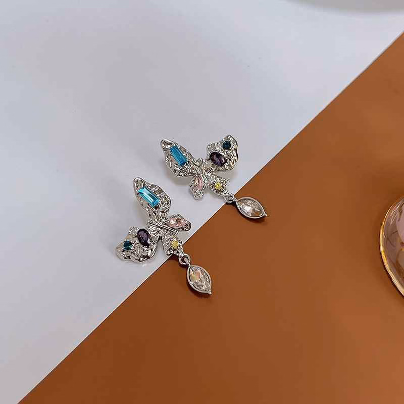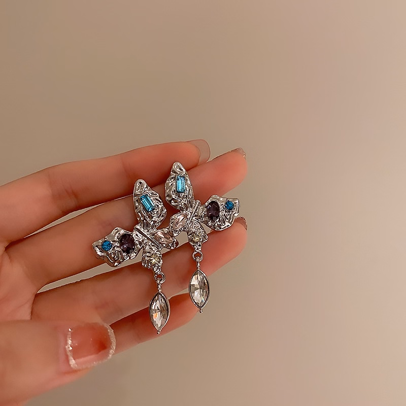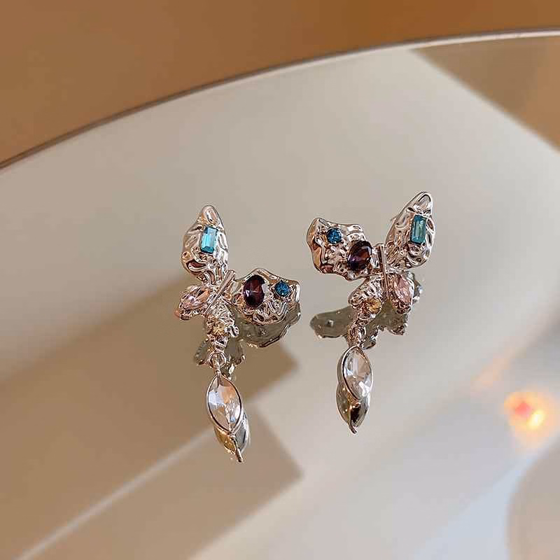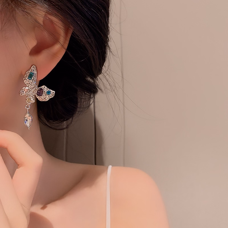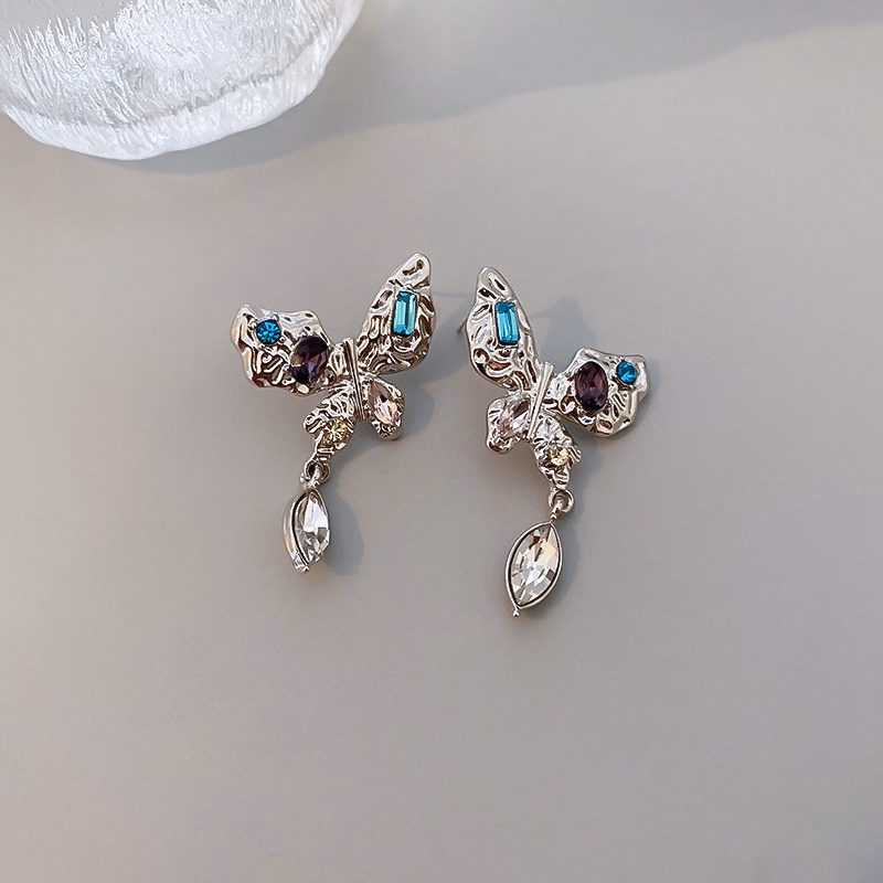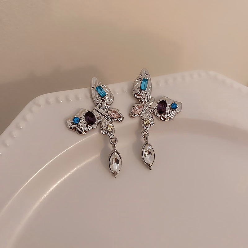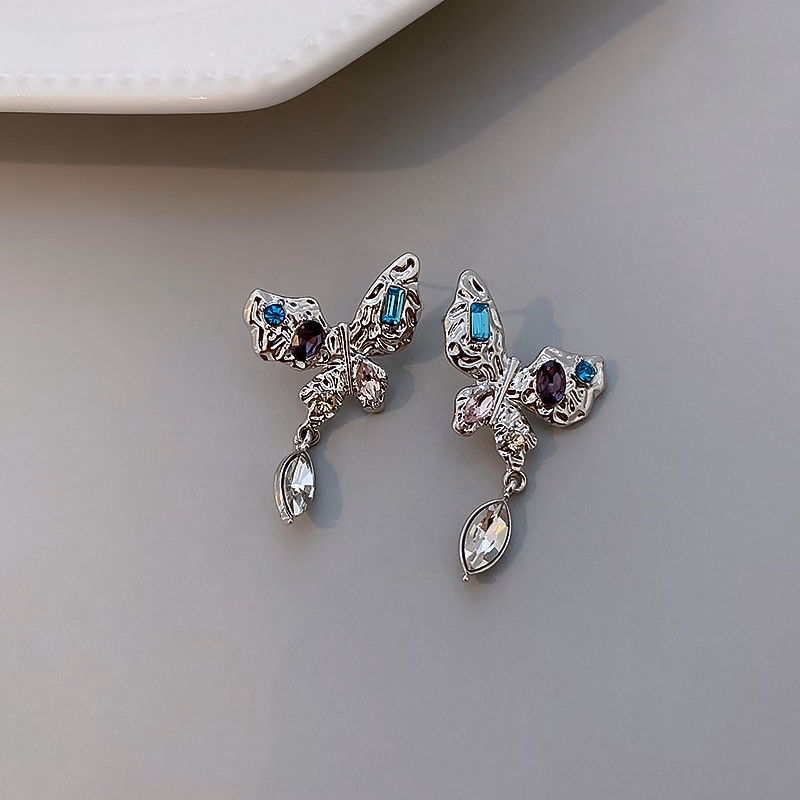 Bông tai thời trang Korea style bông tai hình bướm đính đá nhiều màu với chất liệu hợp kim chống gỉ. Phù hợp đi chơi đi làm, đi tiệc,…