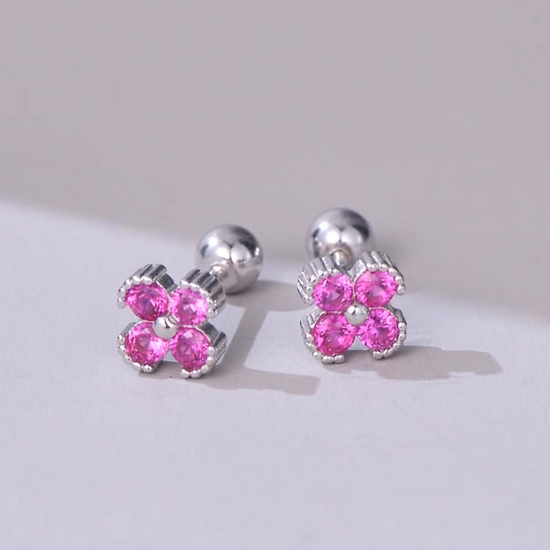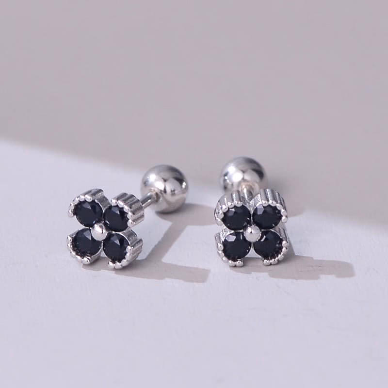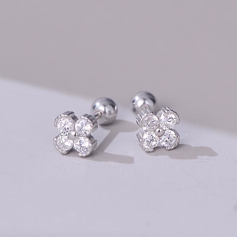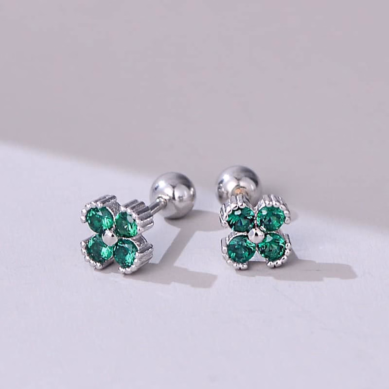 Bông Tai Cỏ Bốn Lá Bạc Italya Xi Bạch Kim Chốt Vặn – Thắng Giang