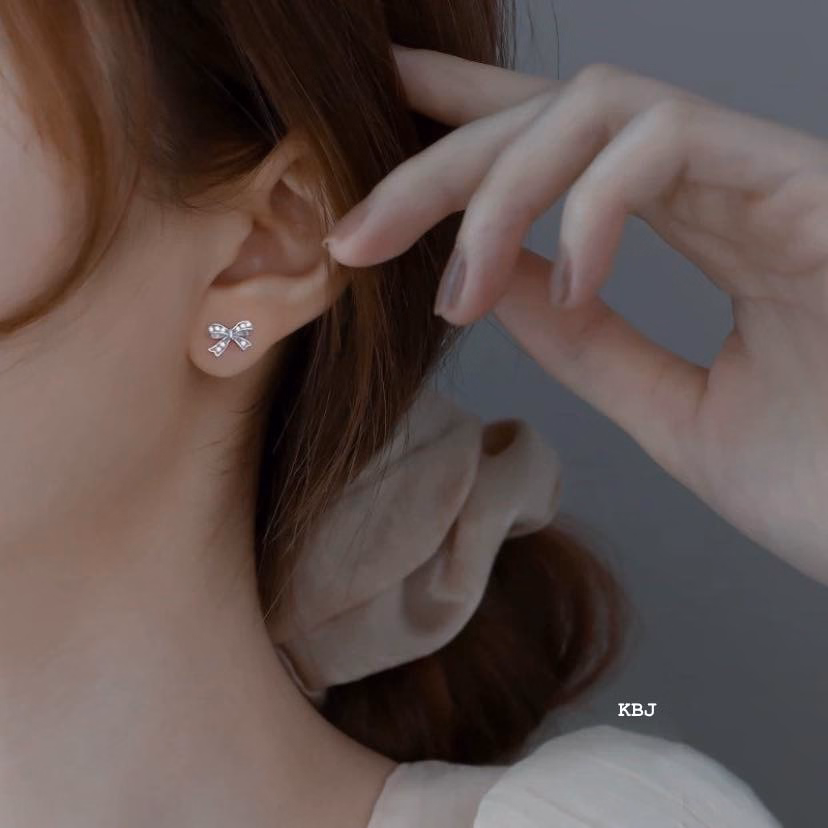 Tên sản phẩm: bông tai nơ bạc ta đính đá có thẻ hóa đơn tiệm vàng – Thắng Giang