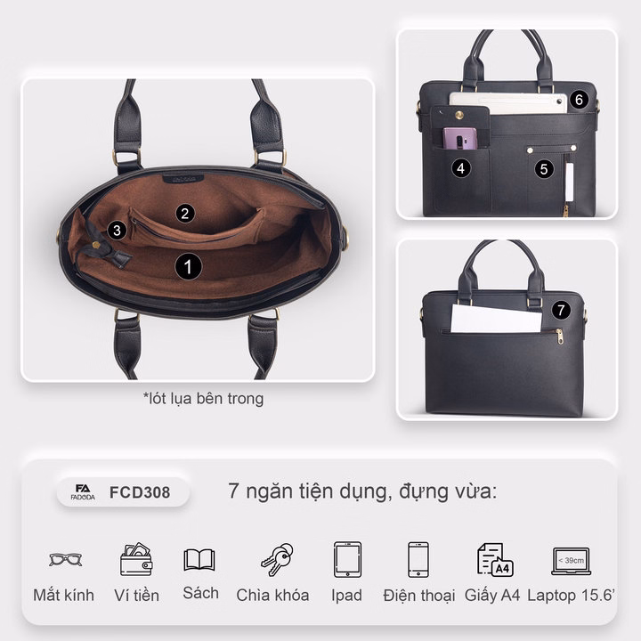 Sở hữu thiết kế tối giản mà nổi bật, chất liệu bền đẹp, khả năng chứa đựng khoa học và nhiều tiện ích cho người dùng bận rộn, Fadoda Fcd308 là người bạn đồng hành lý tưởng nơi văn phòng, trong các cuộc họp hay những ngày di chuyển liên tục.