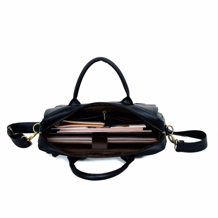 ✔️Thiết kế gồm ngăn lớn, 1 ngăn chuyên đựng Laptop, 1 ngăn lớn bạn đựng những hồ sơ và tài liệu+thêm 1 ngăn nhỏ có dây kéo bên trong tiện dụng. Thêm 2 ngăn phụ bên trong và thêm 2 ngăn dây kéo ở mặt trước và mặt sau túi cho bạn thỏa sức để đồ.