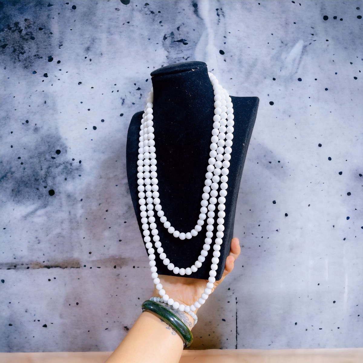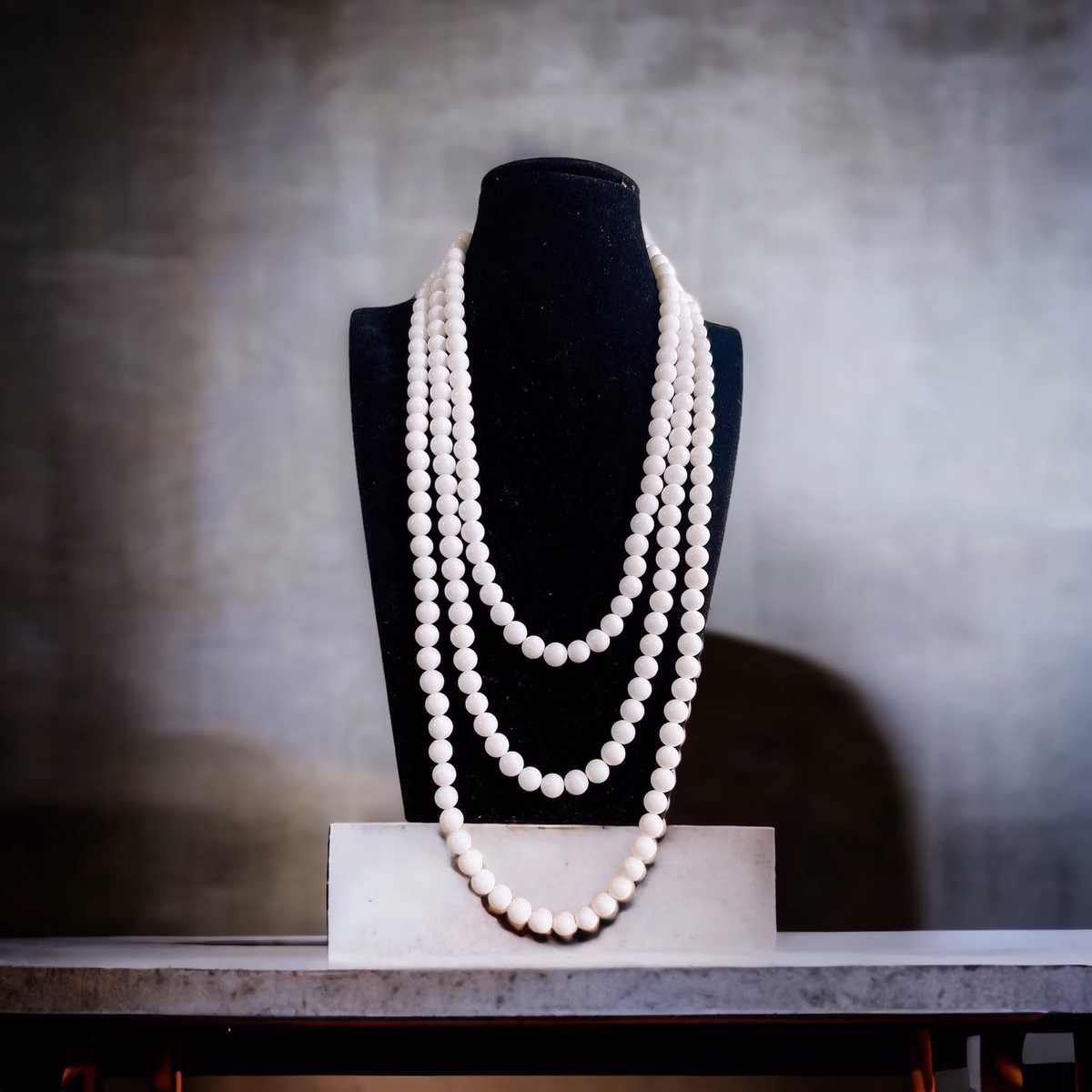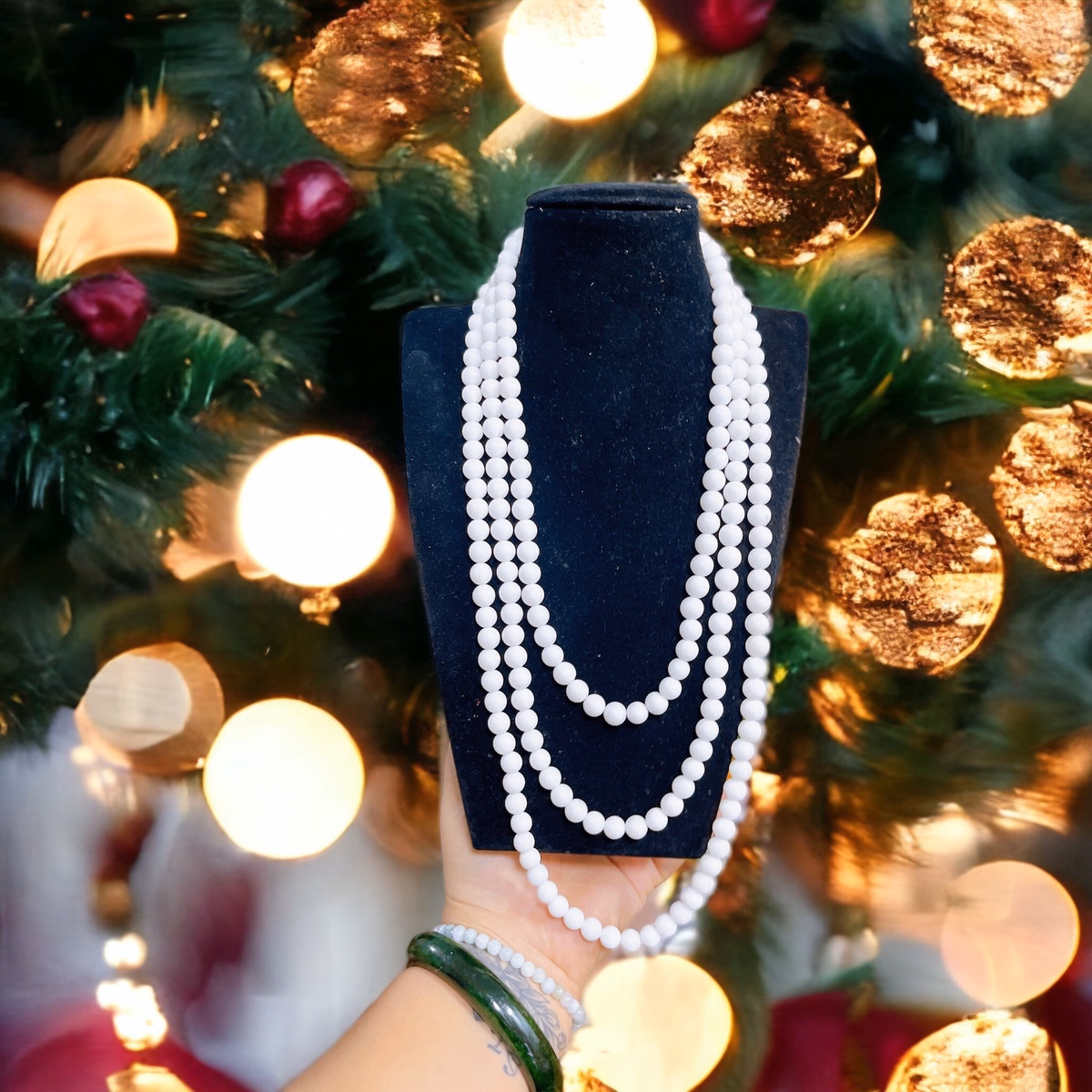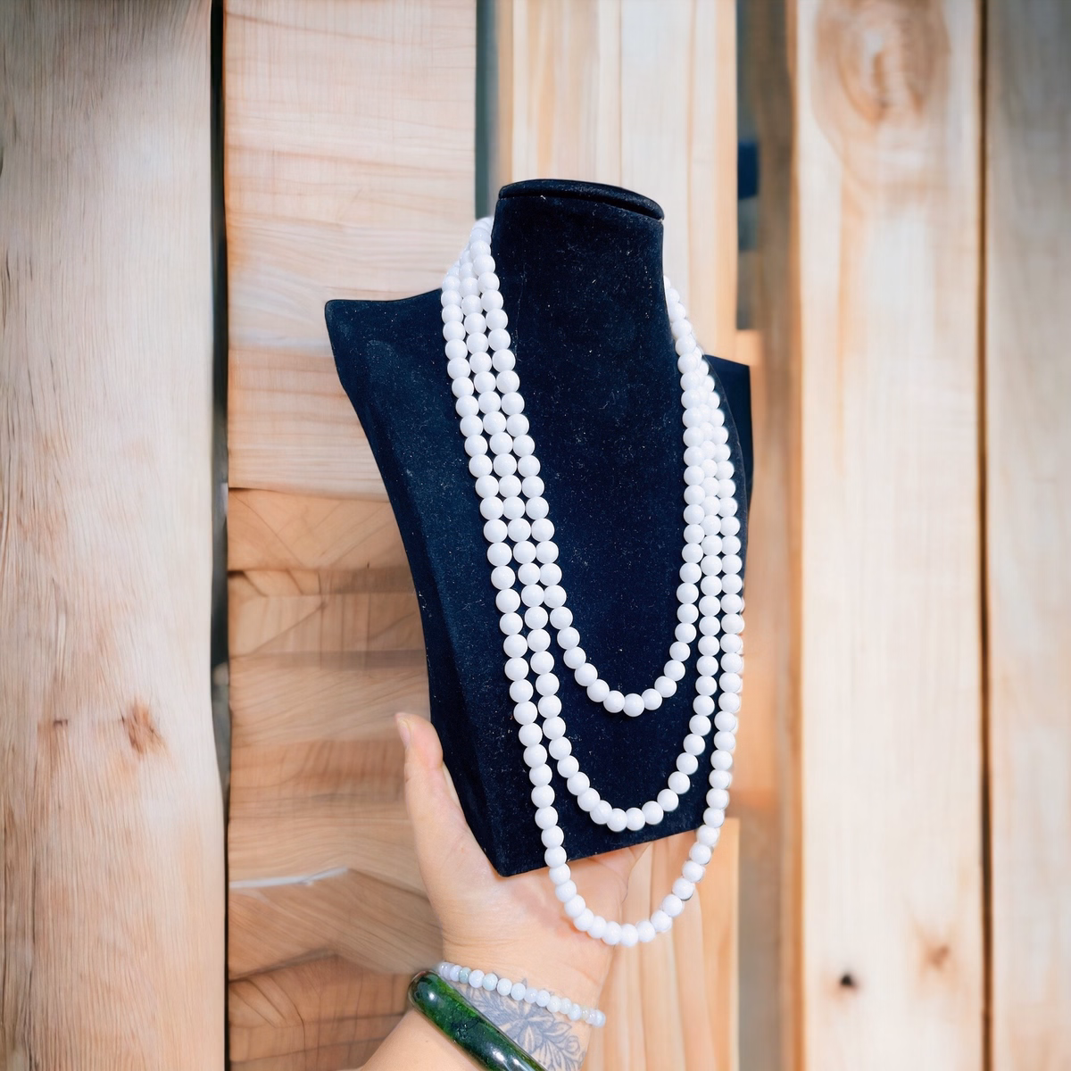 Chuỗi Vòng Cổ Ba Tầng Đá Trắng 8 Ly – Thắng Giang