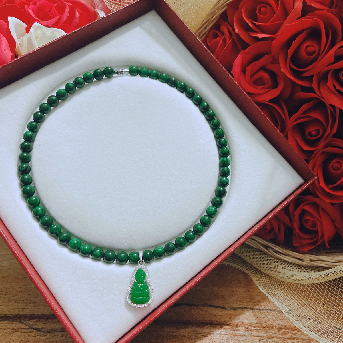 Chuỗi Vòng Cổ Cẩm Thạch , Mẹ Quan Âm Bọc Bạc Ta Cao Cấp Tặng Kèm Hộp Sang Trọng – Thắng Giang