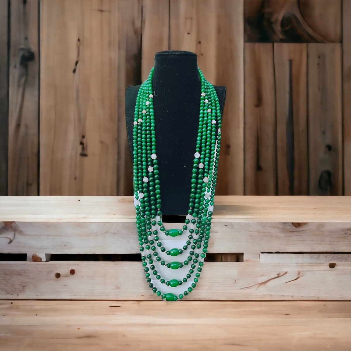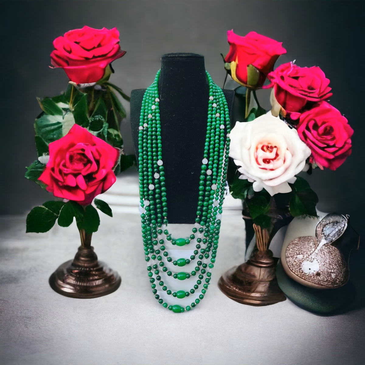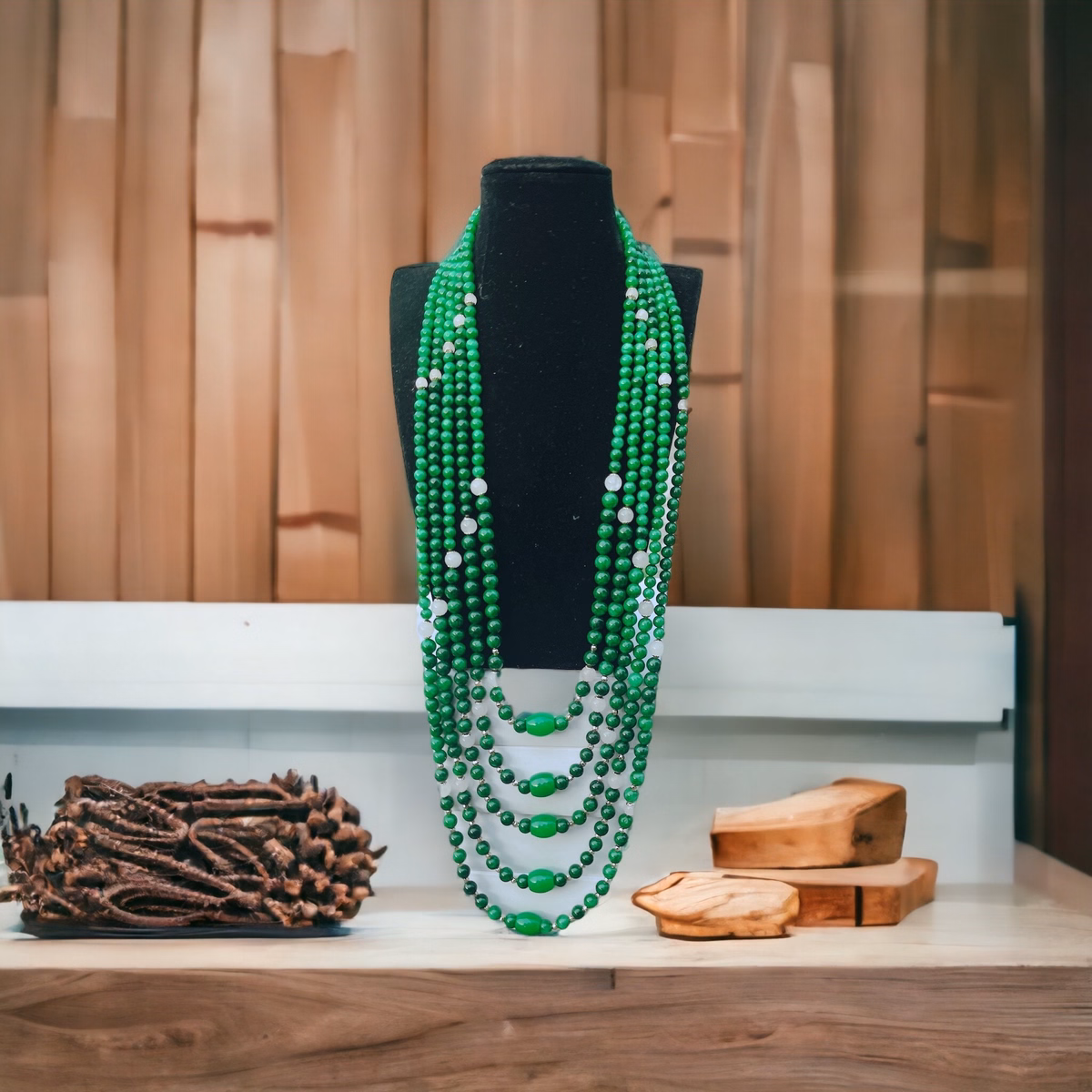 Tên sản phẩm: chuỗi vòng cổ ngọc cẩm thạch năm tầng phối lu thống hầu dâng – thắng giang
