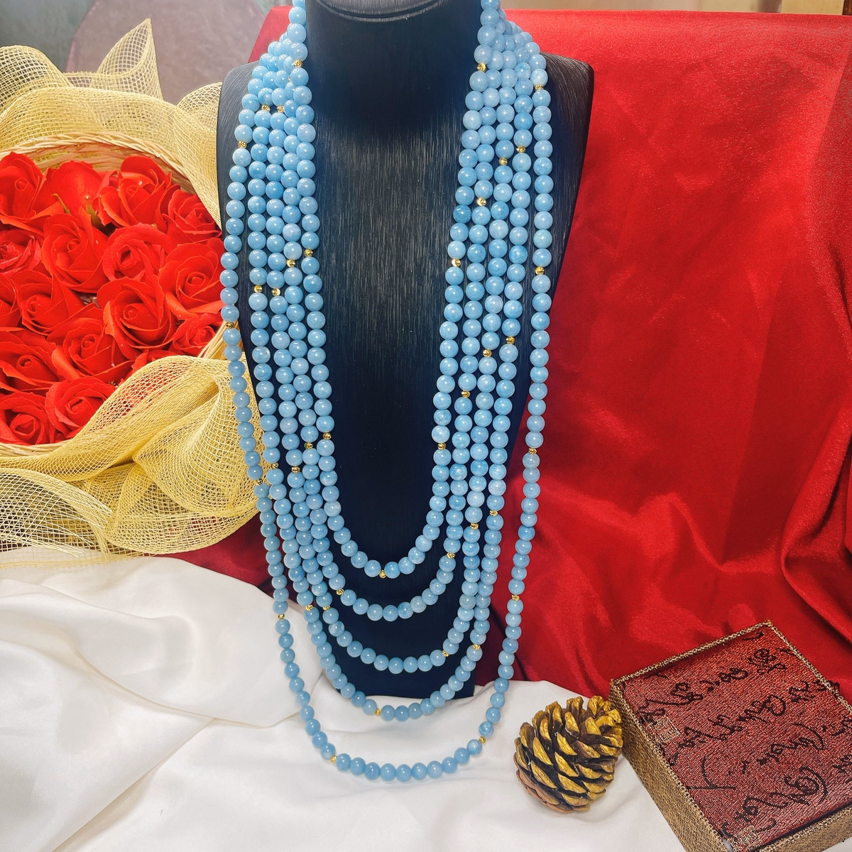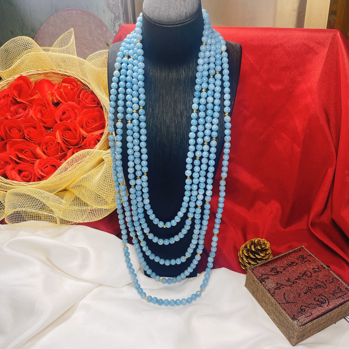 Chuỗi Vòng Cổ Thạch Anh Màu Aquamarine Thiên Nhiên Năm Tầng – Thắng Giang